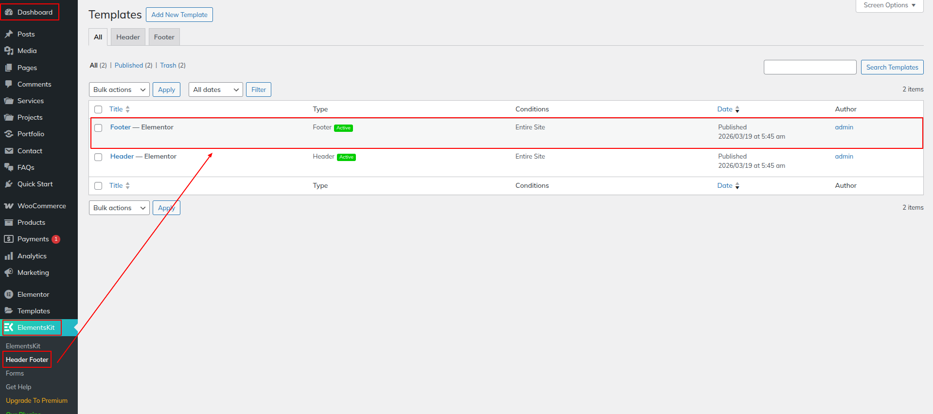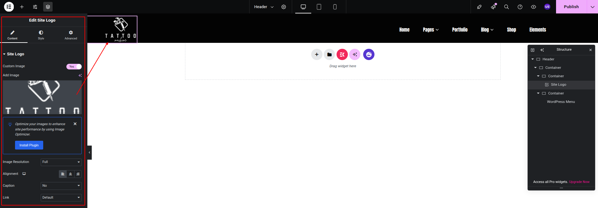 Initial Progress while hitting "Dashboard" Discover "Elements-Kit" Move forward "Edit with elementor" select image/site identity widget" and then "Publish" .