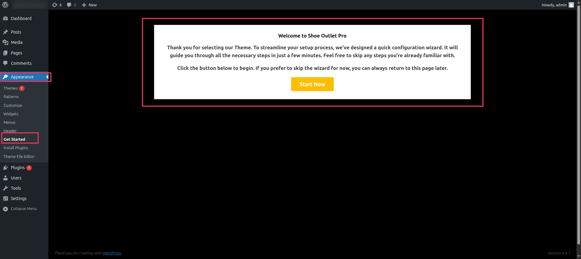 Initial Progress Log into your WordPress Admin as an administrator to activate the selected theme.