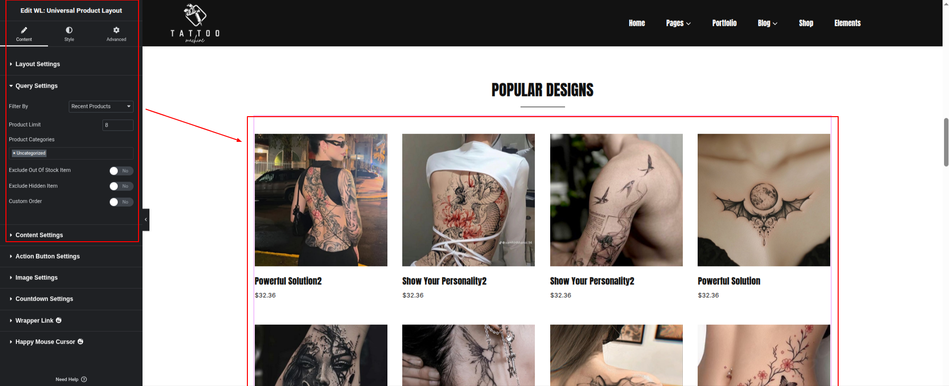 Tattoo Design Product Category Widget This is the Product Category Widget, Modify Your Products Display here.