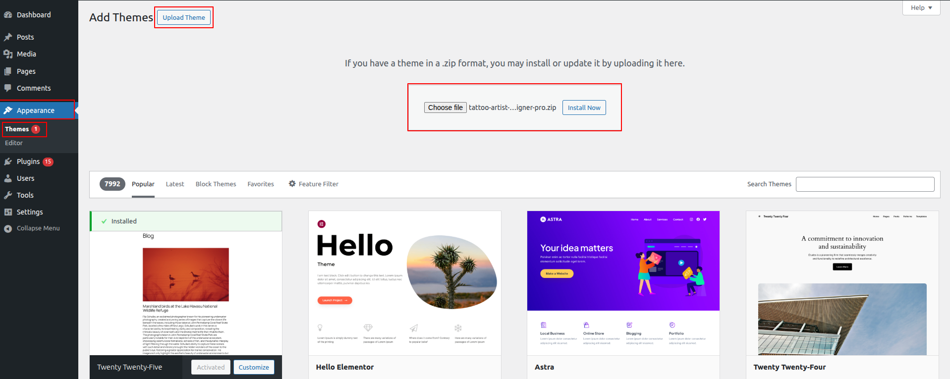 Next Progress while hitting "Dashboard" Discover "Appearance" Move forward "Themes" then "Add New" and lastly "Upload Themes" previous tapping "Install Now" .