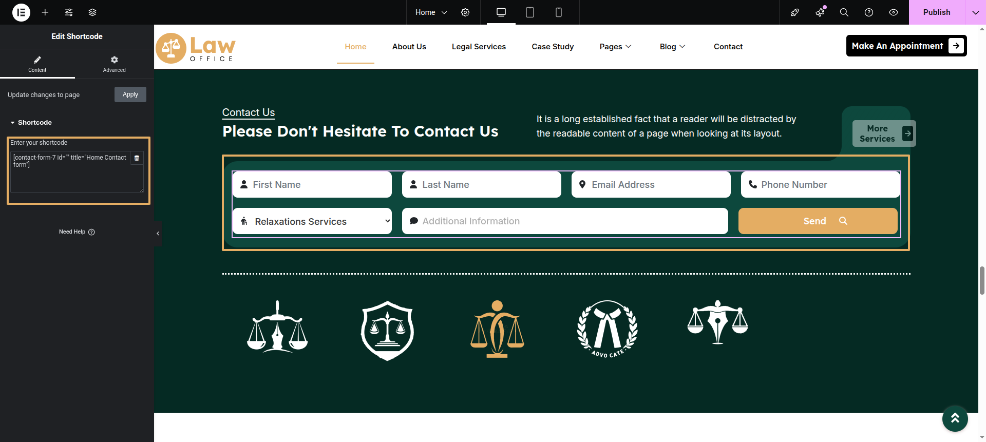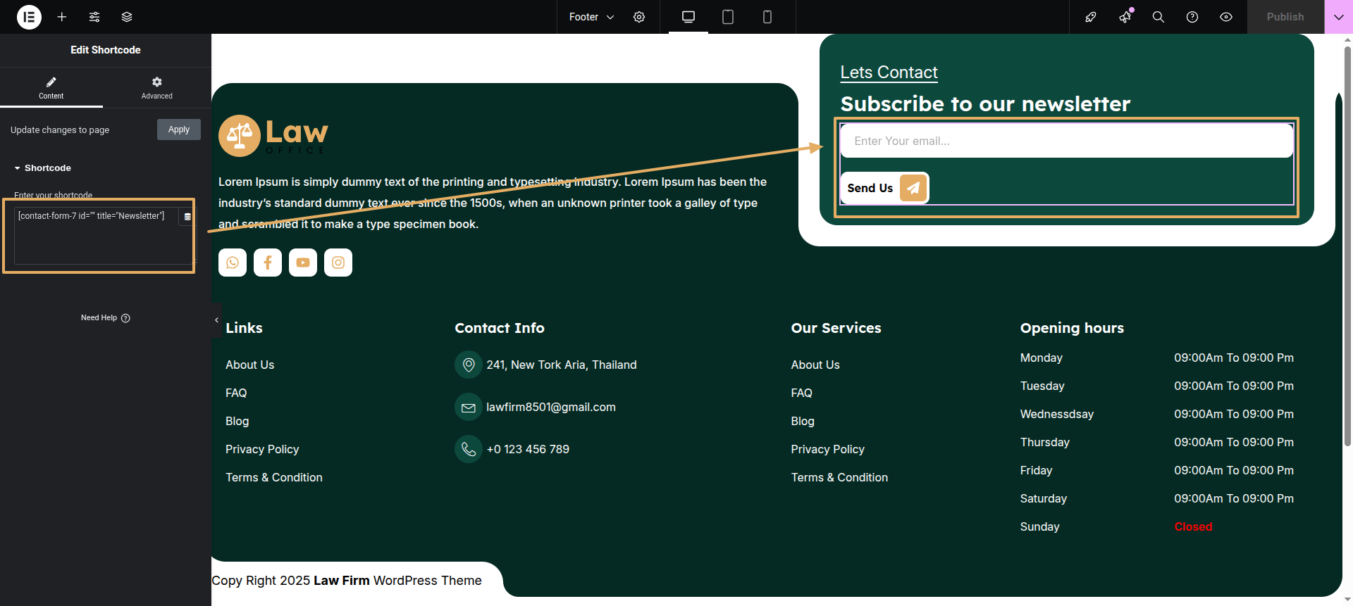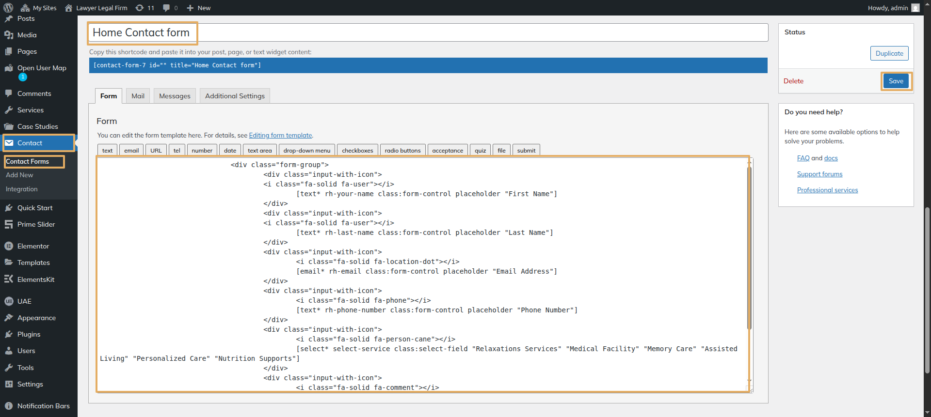 Next Progress while hitting "edit with elementor" Discover "shortcode" widget then add "contact form shortcode" to fetch the form .