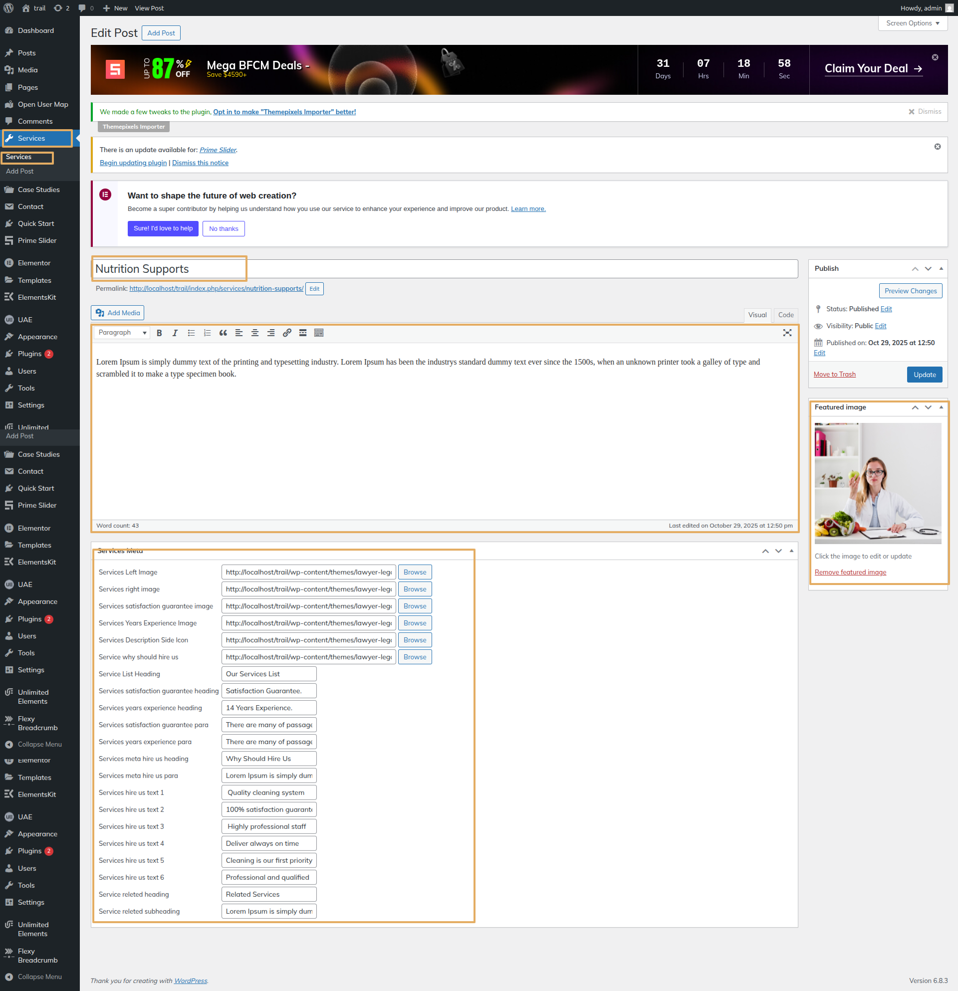 Initial Progress while hitting "Dashboard" Discover "Services" then "add new post" Move forward "add heading, content and featured"