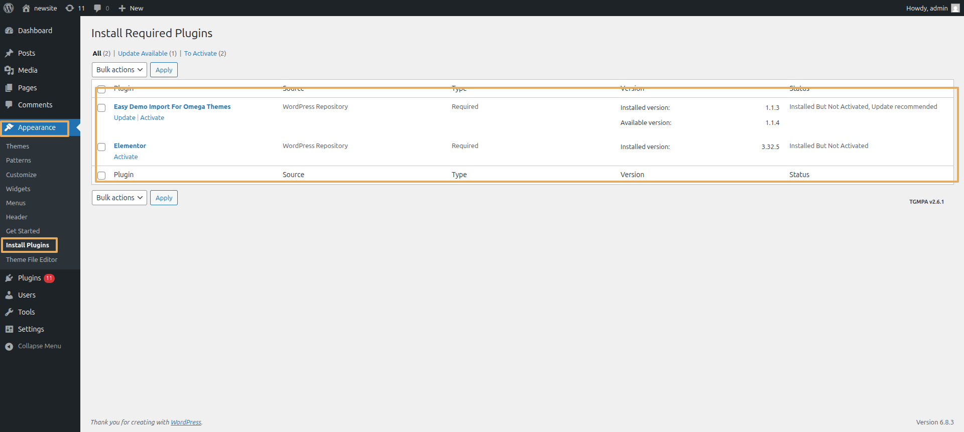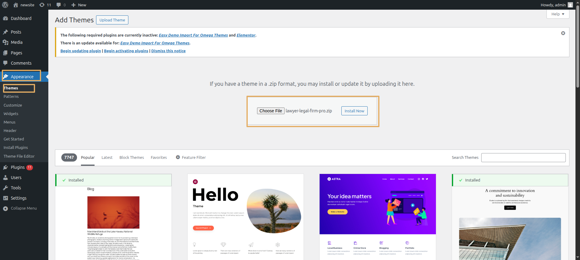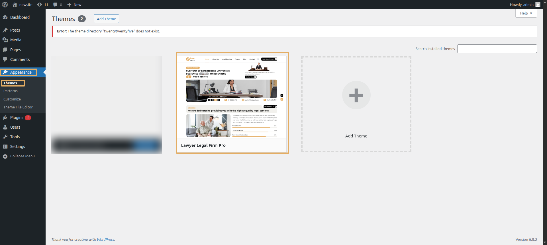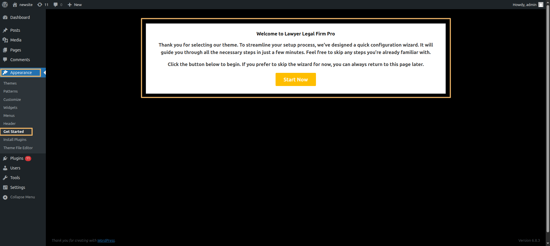 Initial Progress Log into your WordPress Admin as an administrator to activate the selected theme.