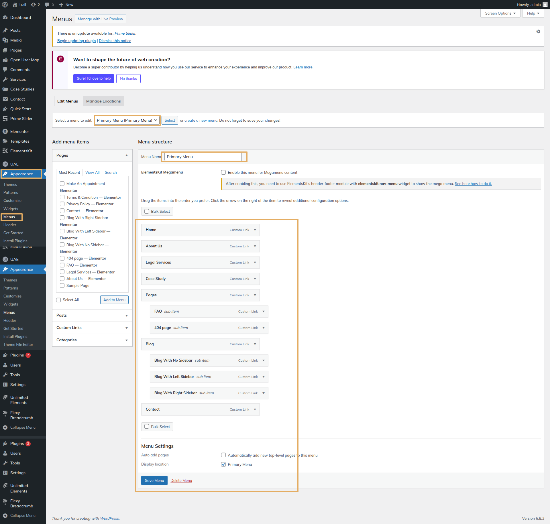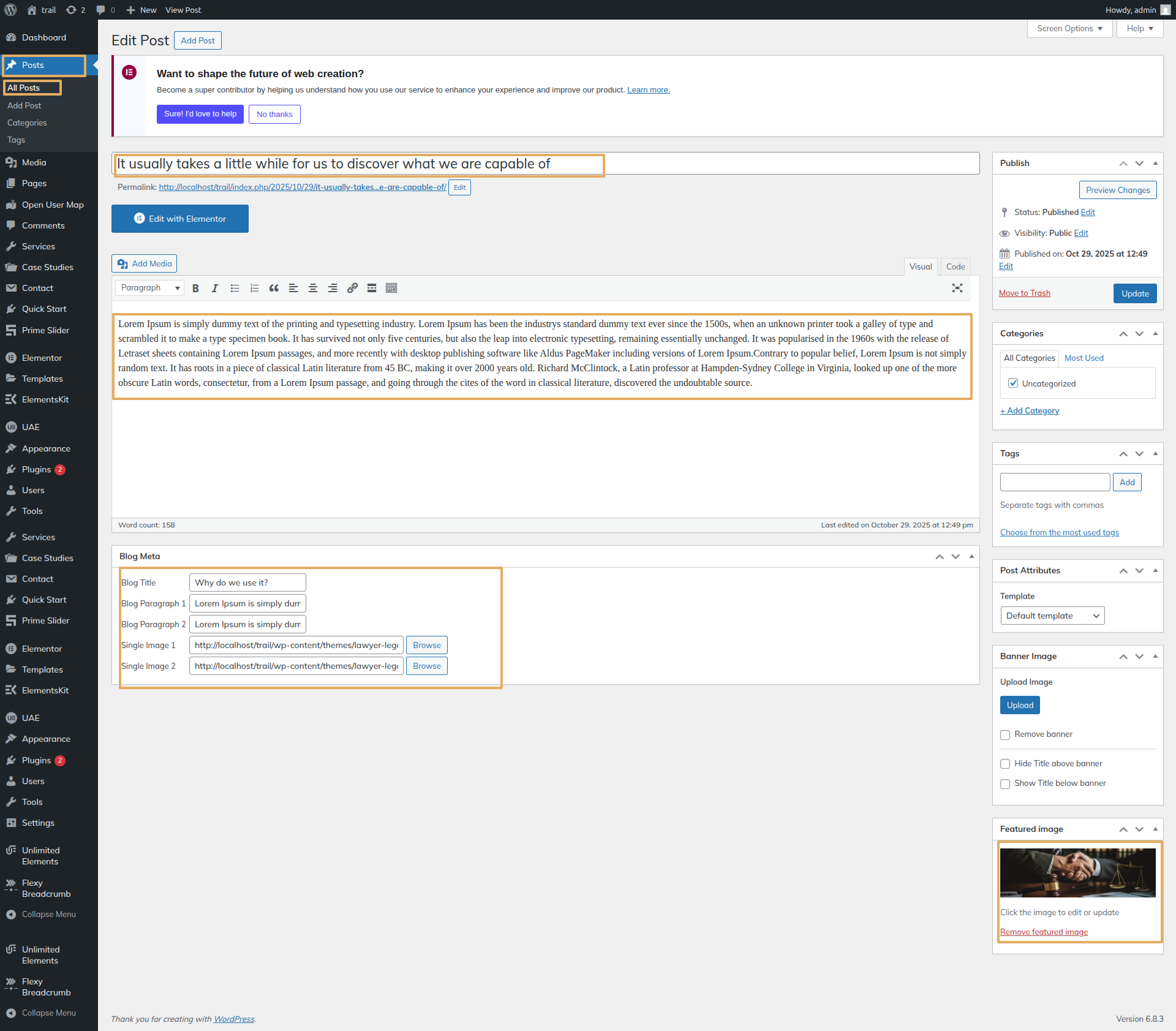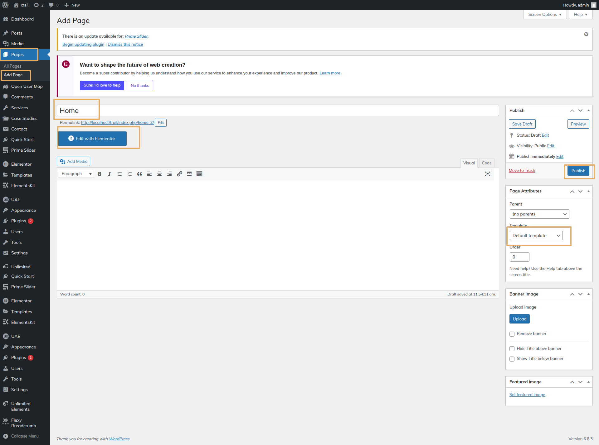 Initial Progress while hitting "page, edit with elementor" Discover "Prime-slider in widgts area" then "add images and content as shown in the screenshots"