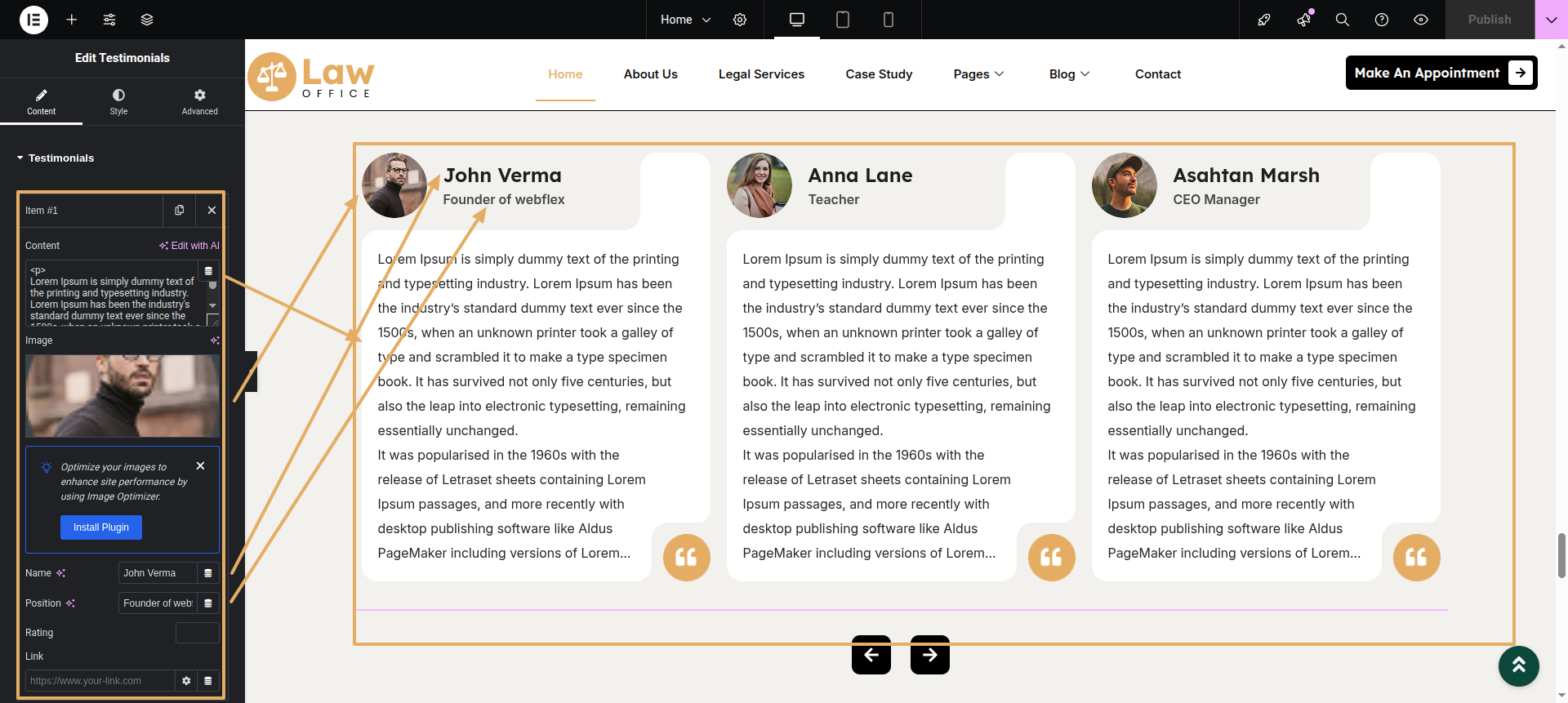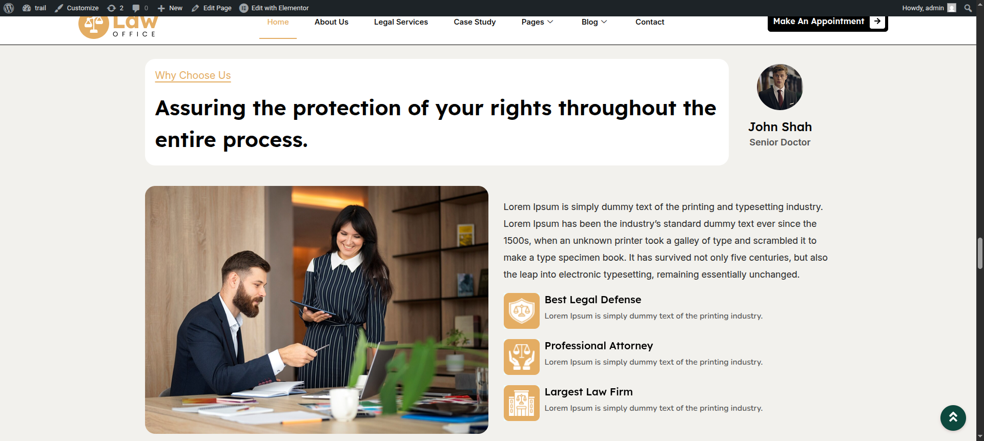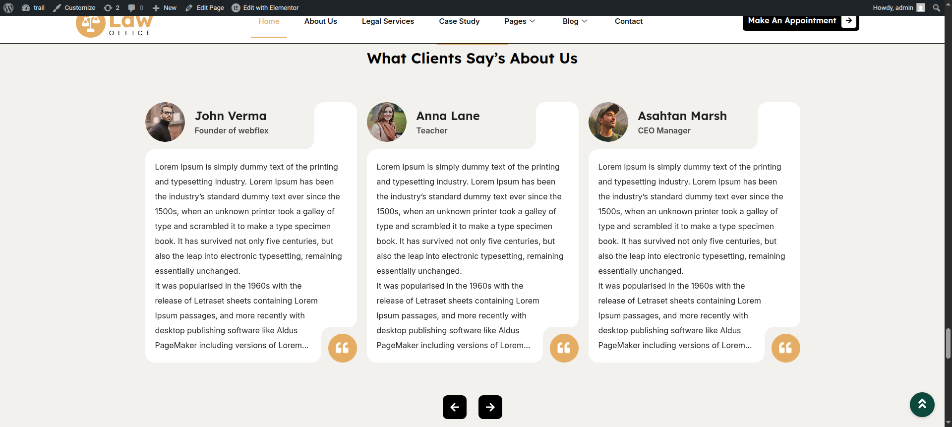 Initial Progress while hitting "edit with elementor" Discover "Testimonials" widget after inserting the widget add testimonial description, then add image and at last Name and designation of the person .