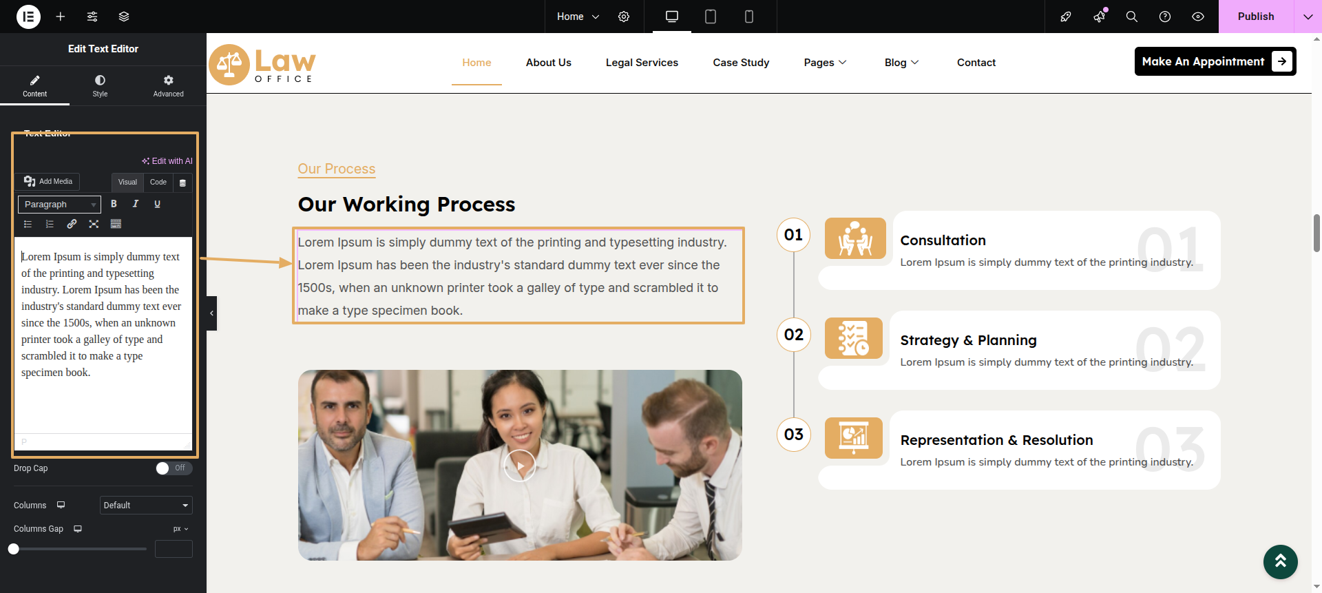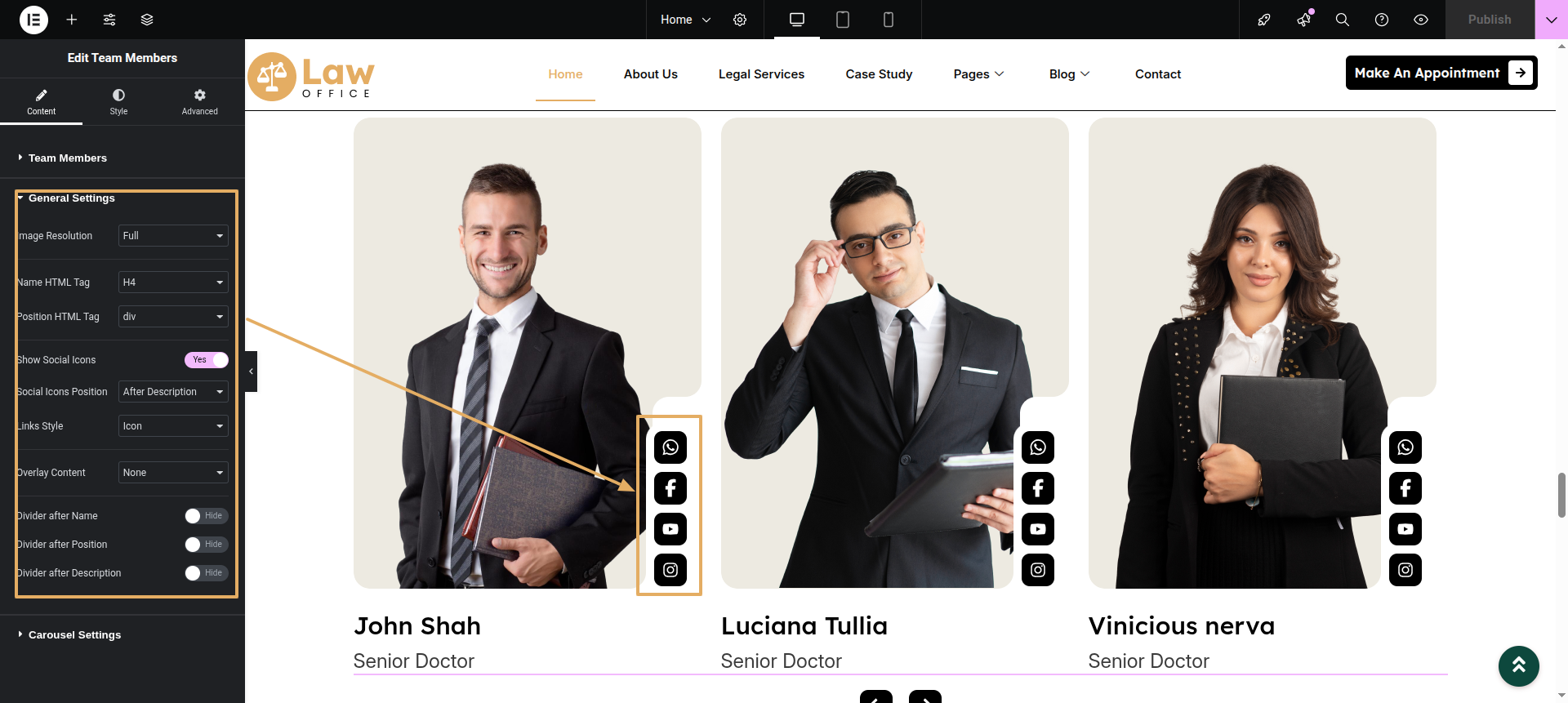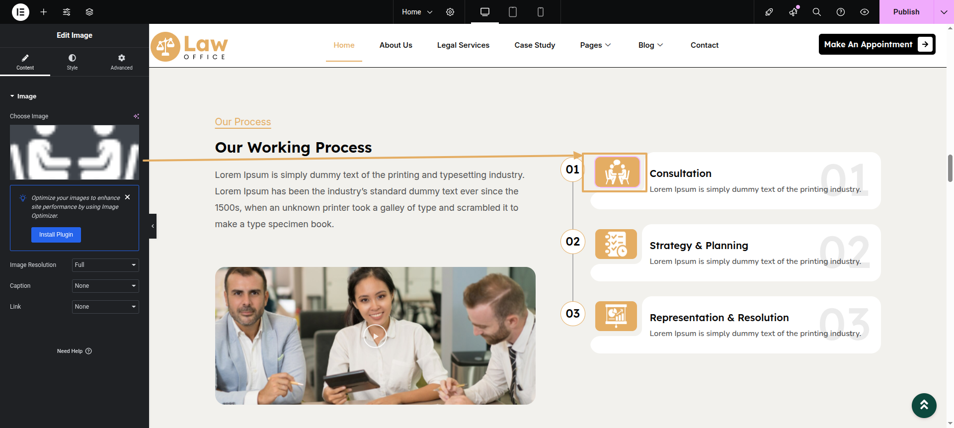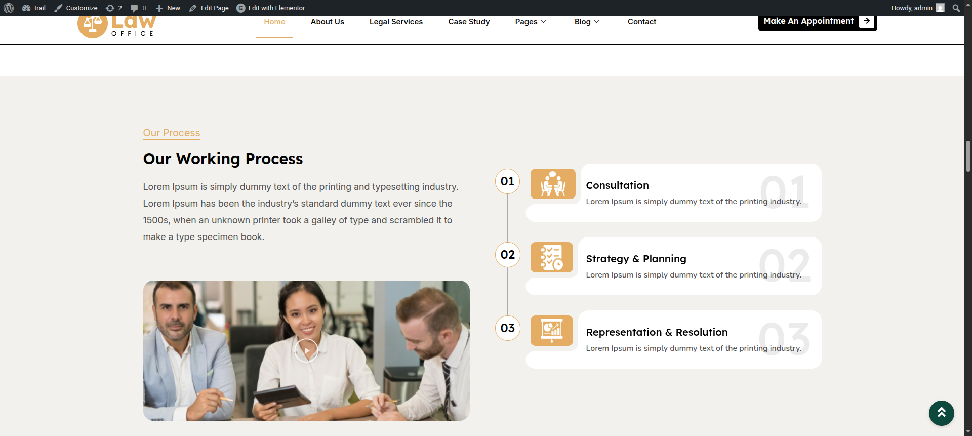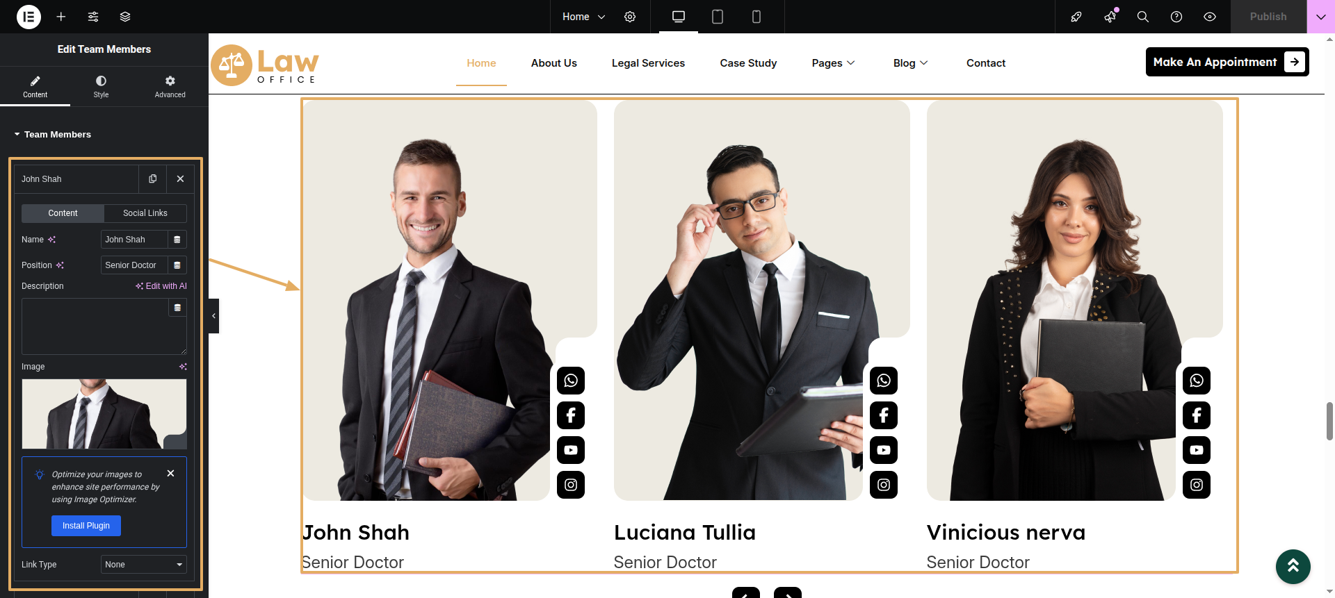 Initial Progress while hitting "edit with elementor" Discover "Team members" widget then add "Name and designation" Move forward "to add member image".