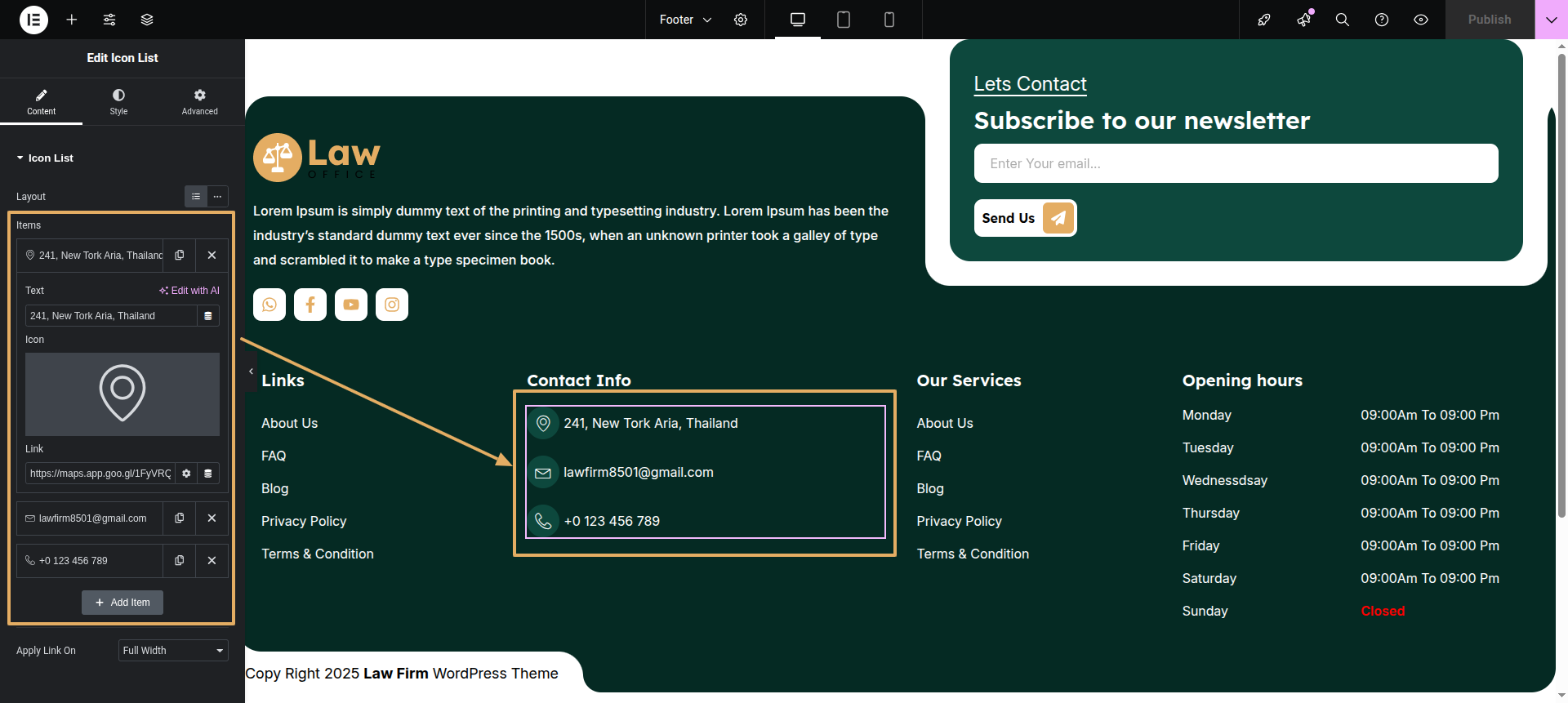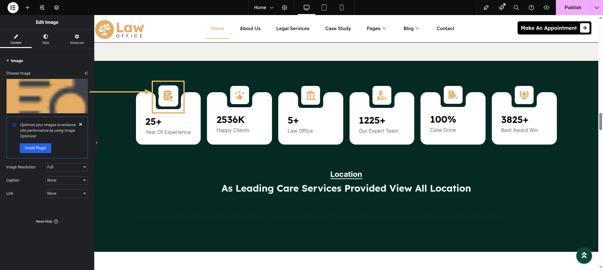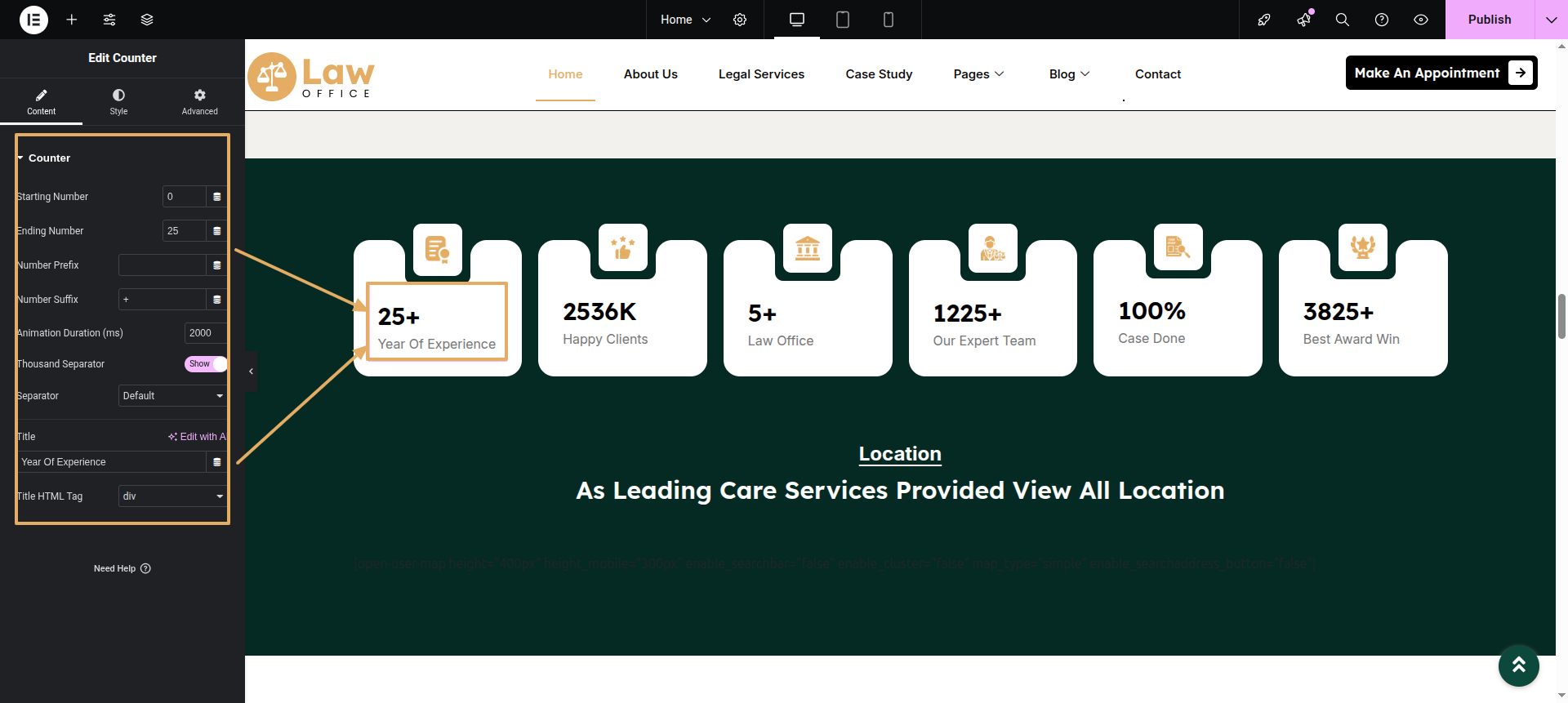 Counter add counter widget from widgets section" then add your counter value and text heading.