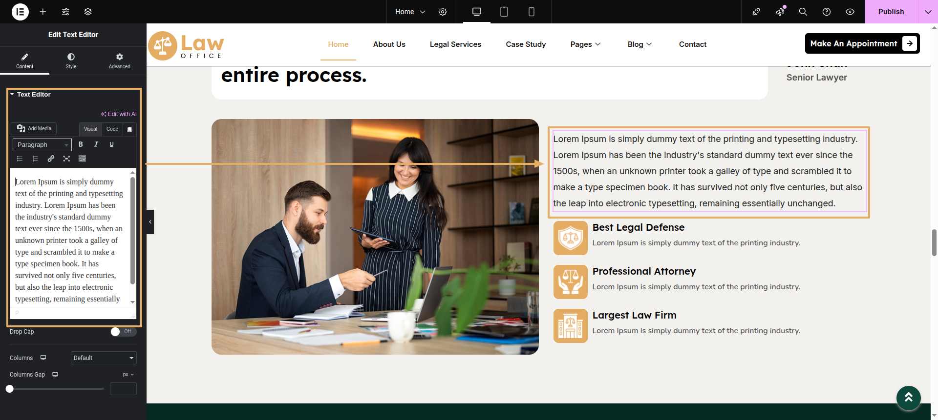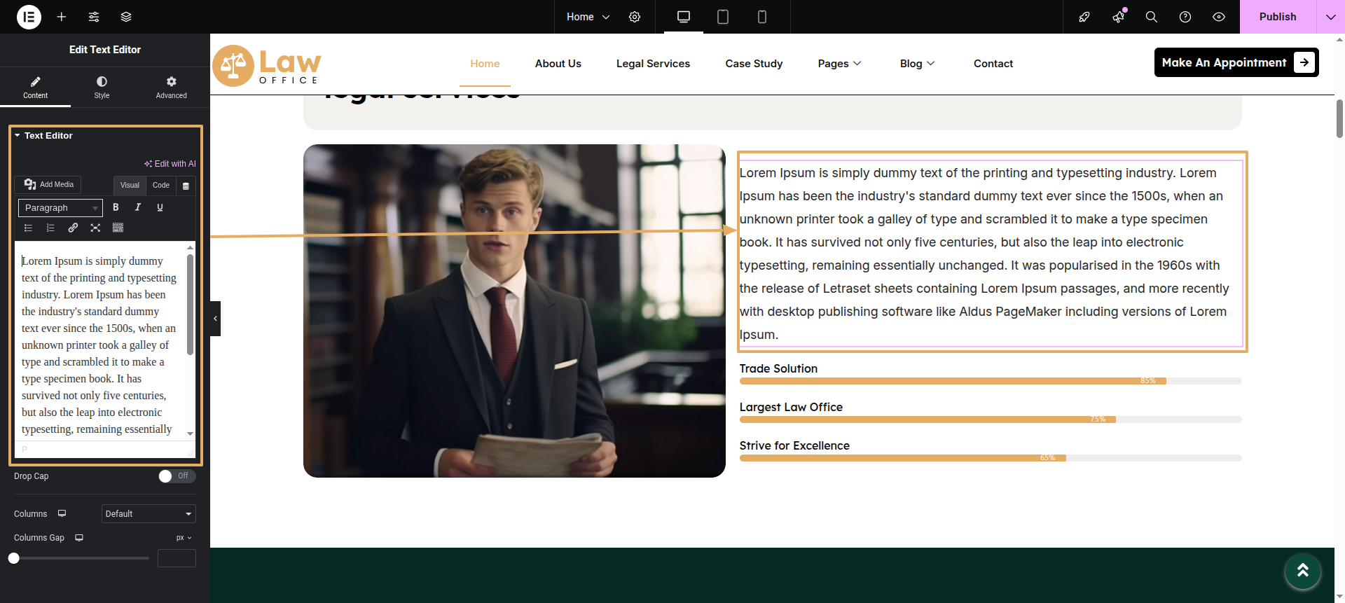 Text editor while hitting "Dashboard" Add your desired text using text editor widget." .