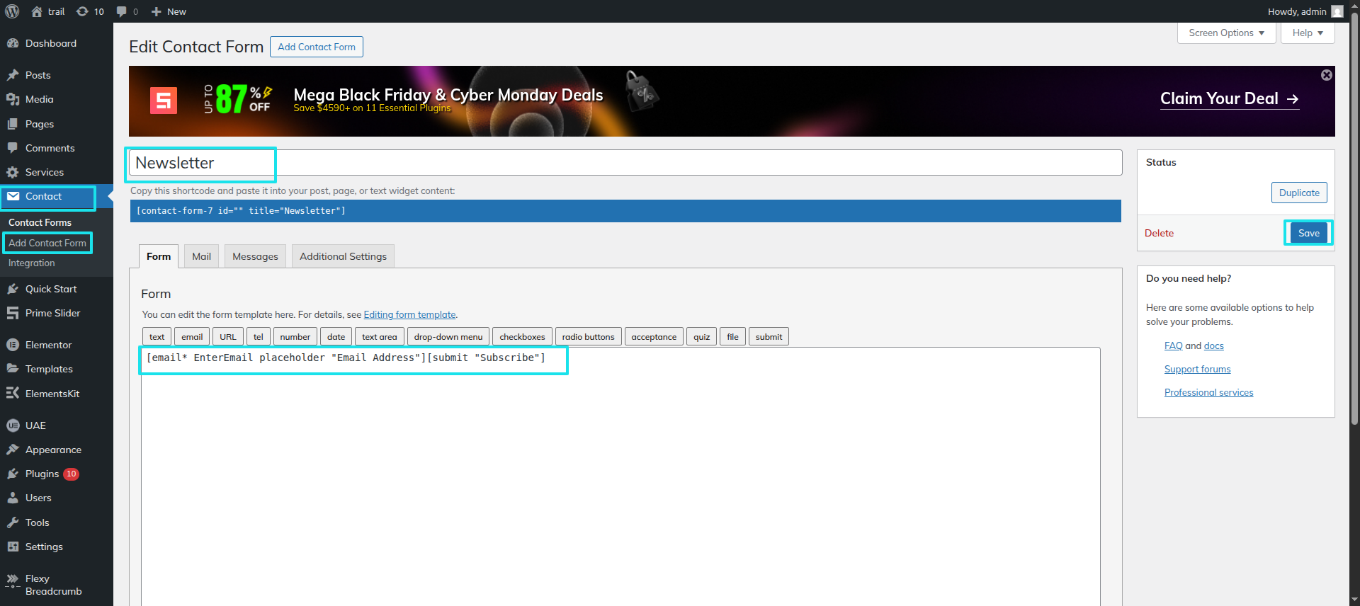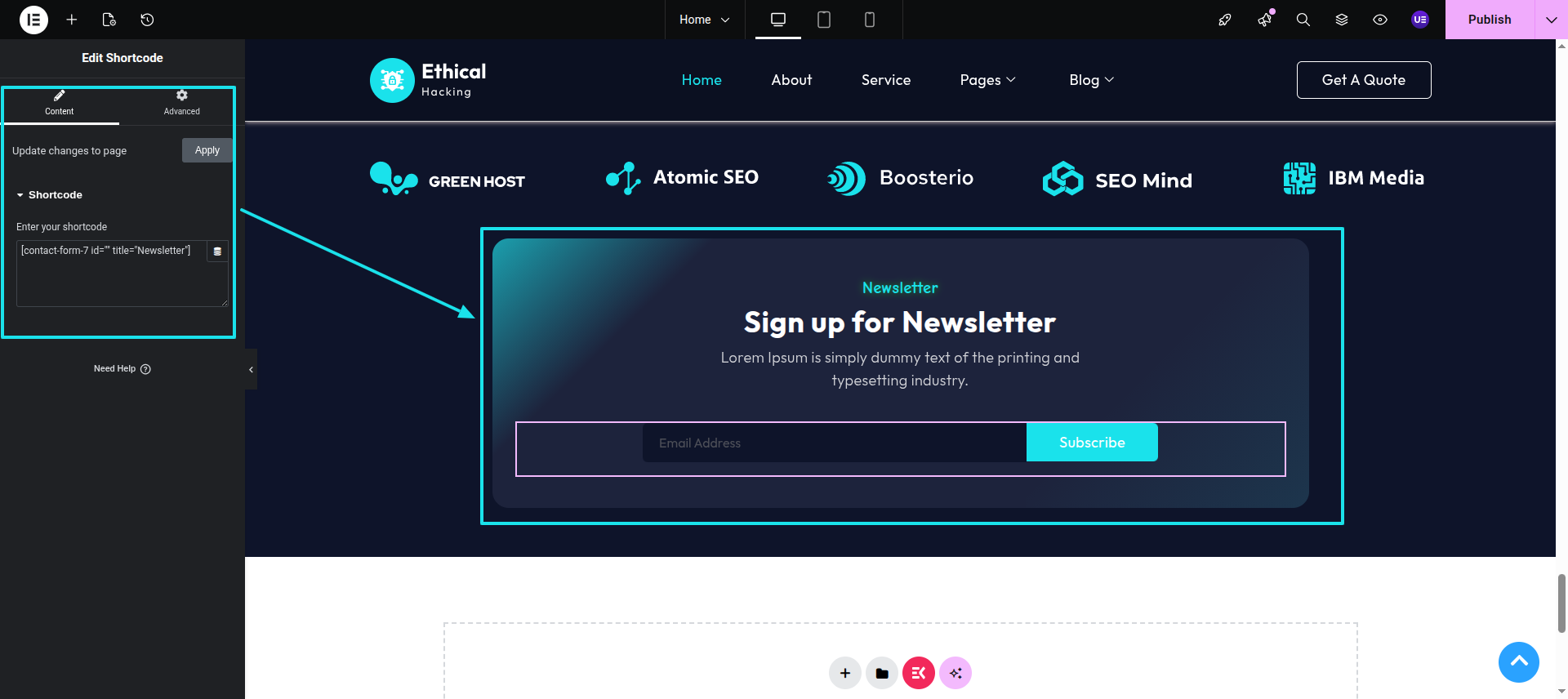 Next Progress while hitting "edit with elementor" Discover "shortcode" widget then add "contact form shortcode" to fetch the form .