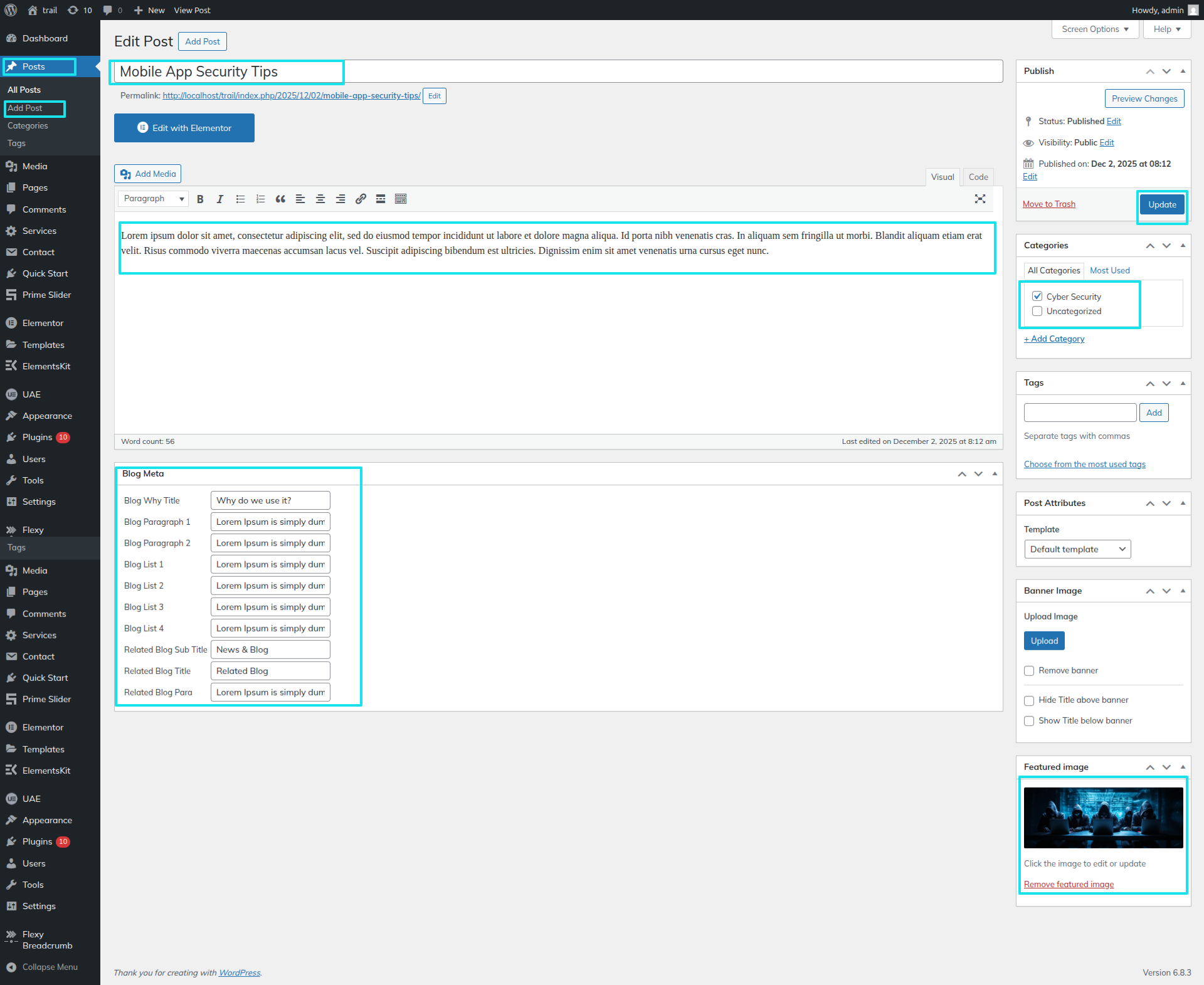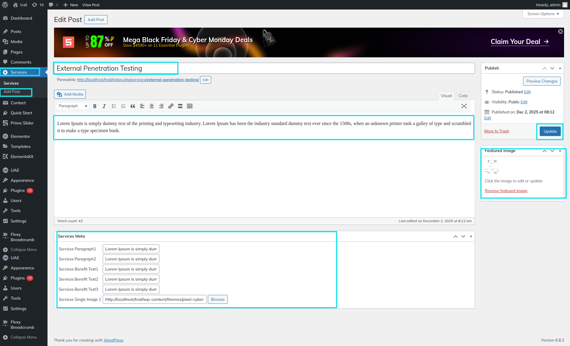 Initial Progress while hitting "Dashboard" Discover "Services" then "add new post" Move forward "add heading, content and featured"