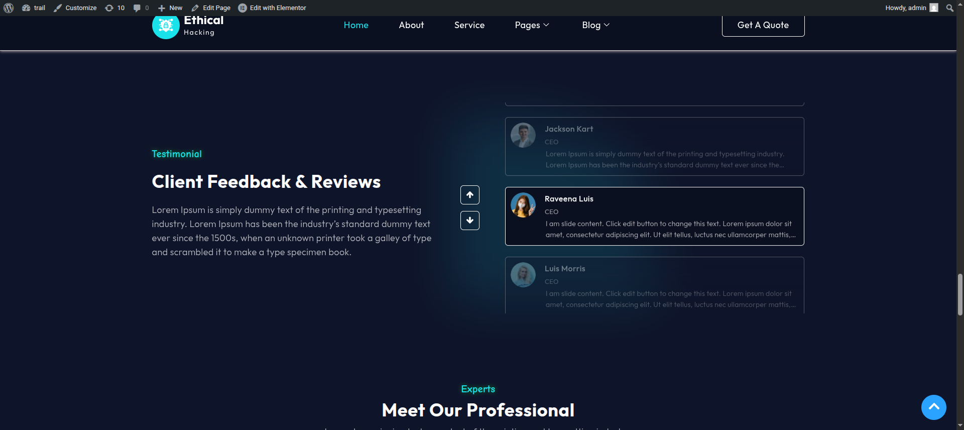This section pertains to the Testimonials.