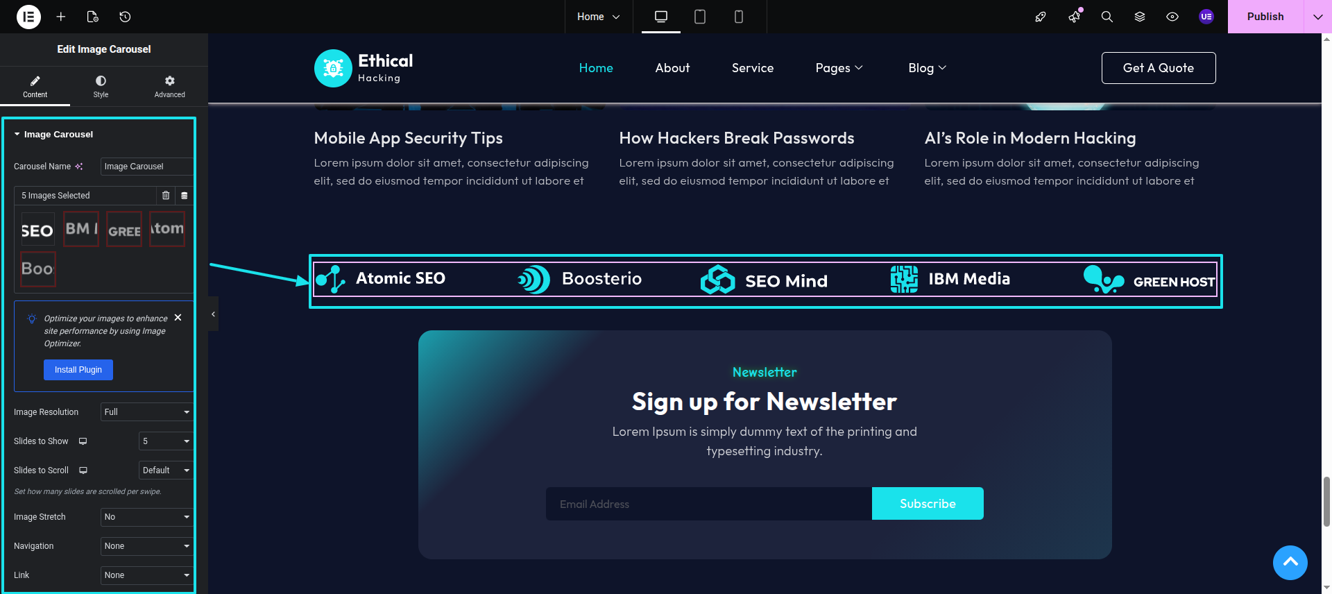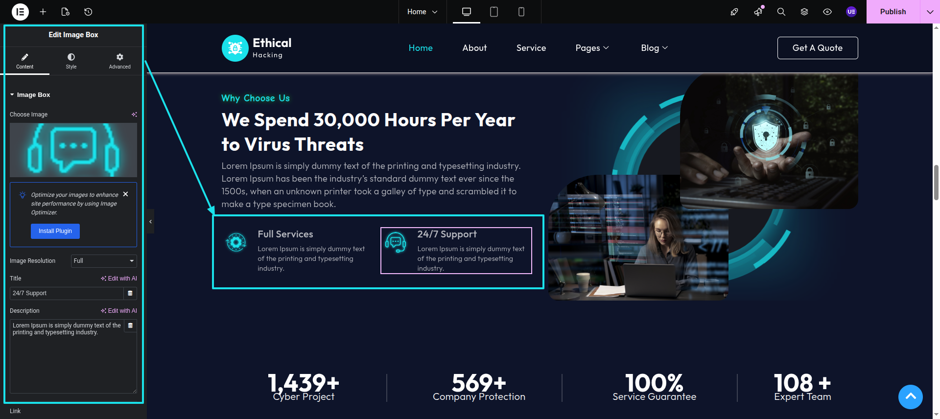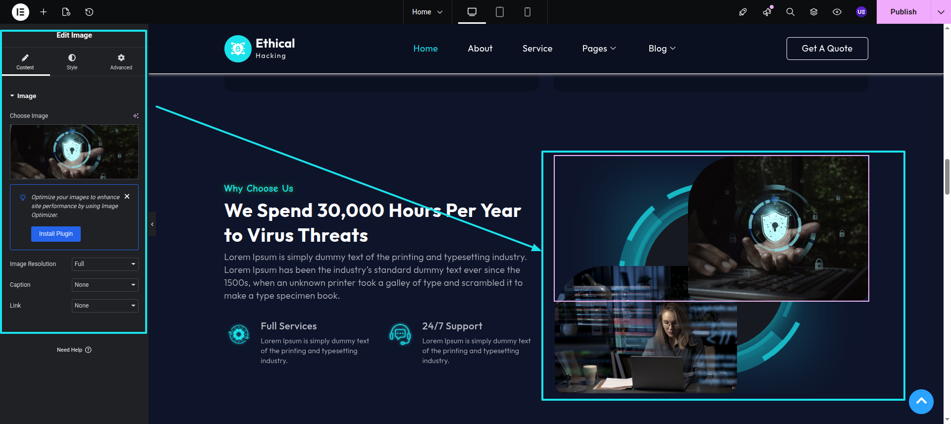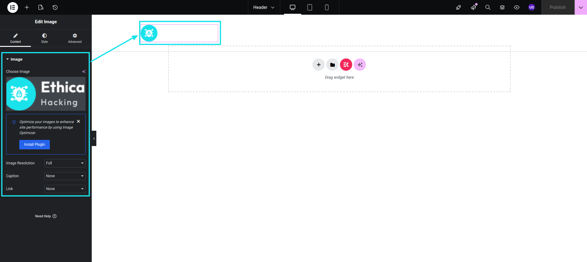 Initial Progress while hitting "Dashboard" Discover "Elements-Kit" Move forward "Edit with elementor" select image/site identity widget" and then "Publish" .