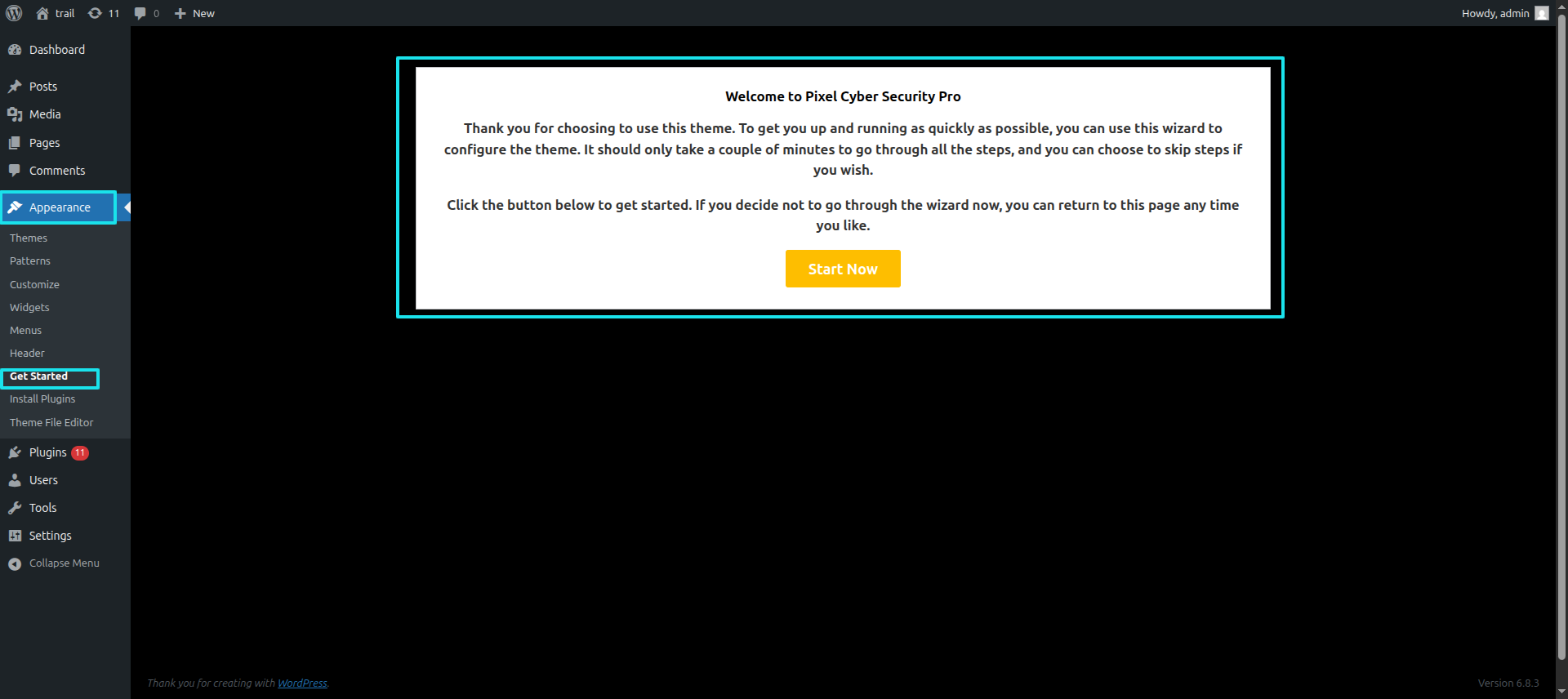 Initial Progress Log into your WordPress Admin as an administrator to activate the selected theme.