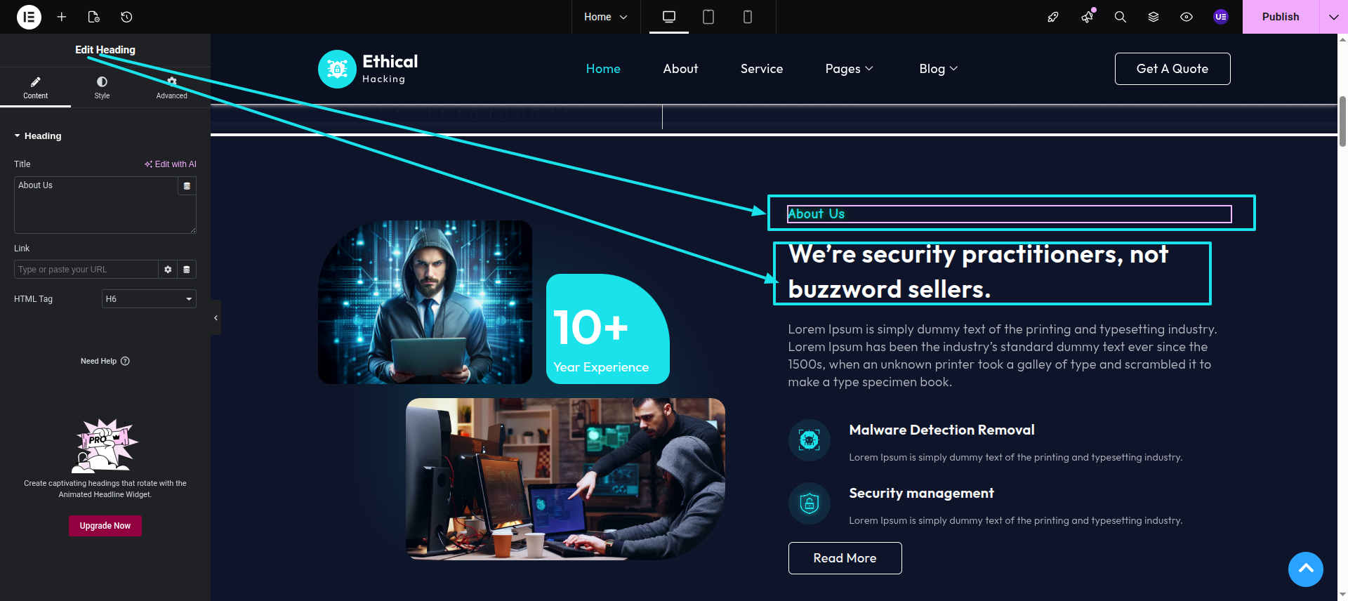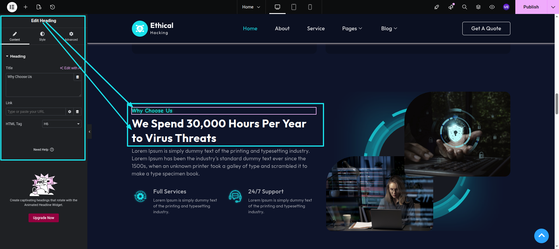 Initial Progress while hitting "page, edit with elementor" Discover "Simple Heading in widgts area" then "add heading as shown in the screenshots"