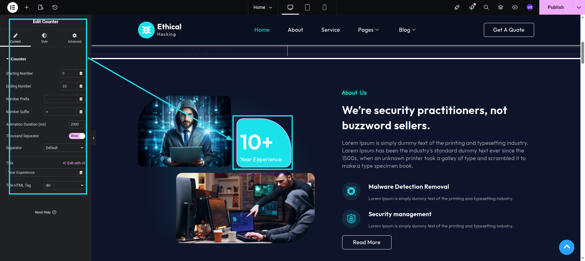 This section pertains to the Hero Section.