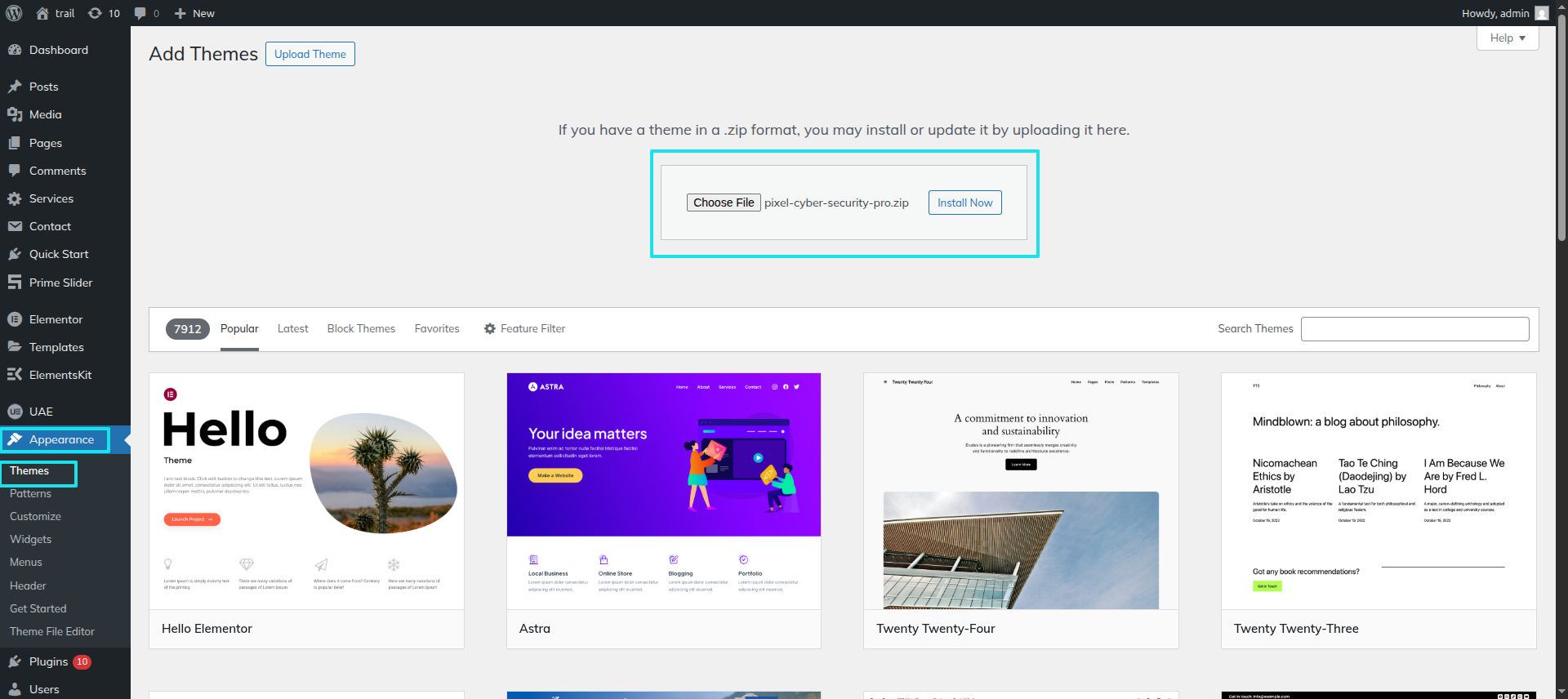 Use FTP as a last resort. Open your FTP client, log in, and locate wp-content and your theme. Download, unzip, and transfer the folder to the server's "themes" directory. The new template will show under "Appearance" in your WordPress Dashboard.