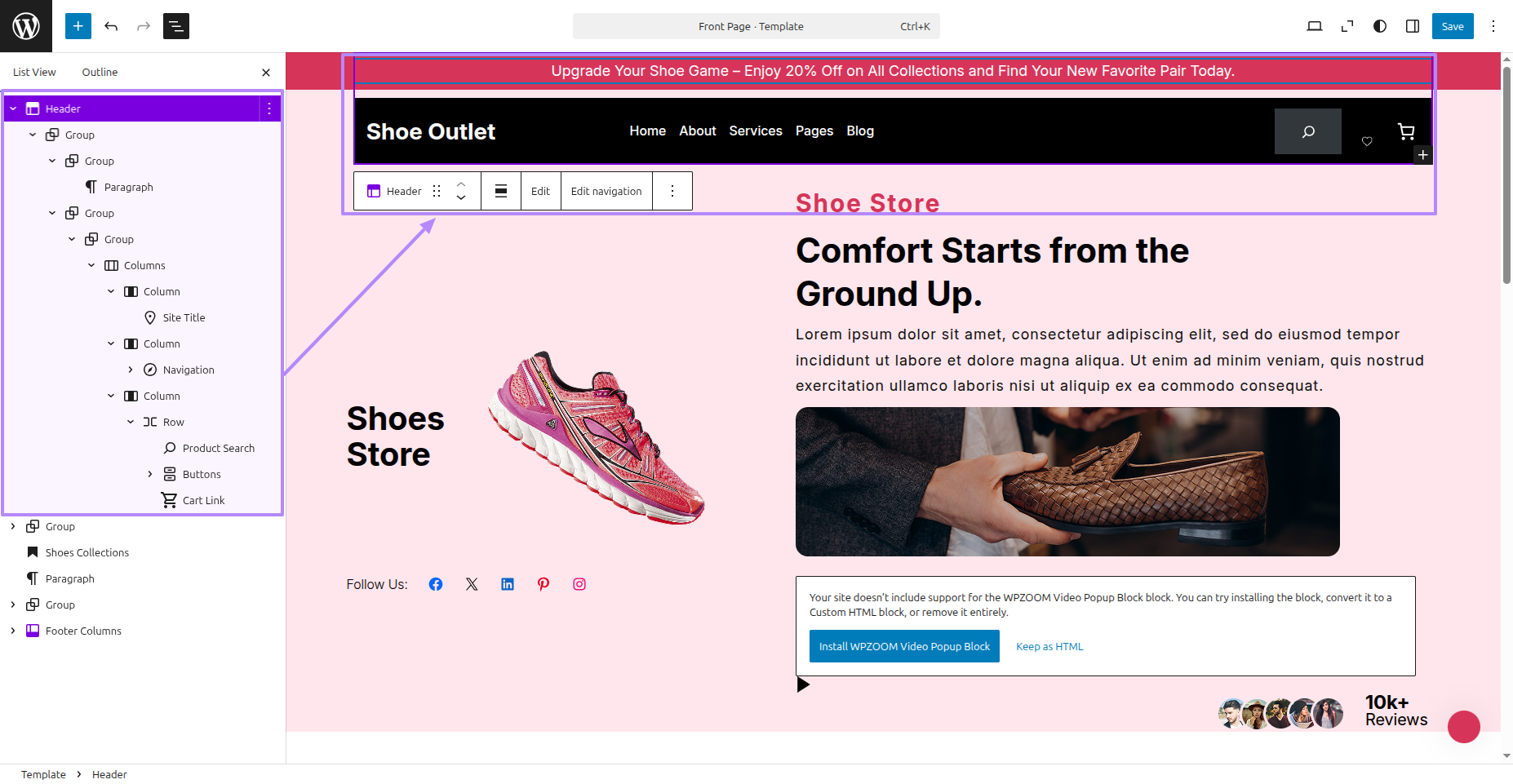 Initial Progress while hitting "Dashboard" Discover "Editor" then "Header" and lastly "Write Site Title" .
