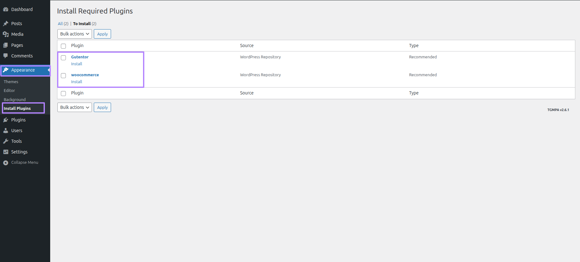 Initial Progress while hitting "Dashboard" Discover "Appearance" and lastly "Install Plugins" previous tapping "Install Now" .
