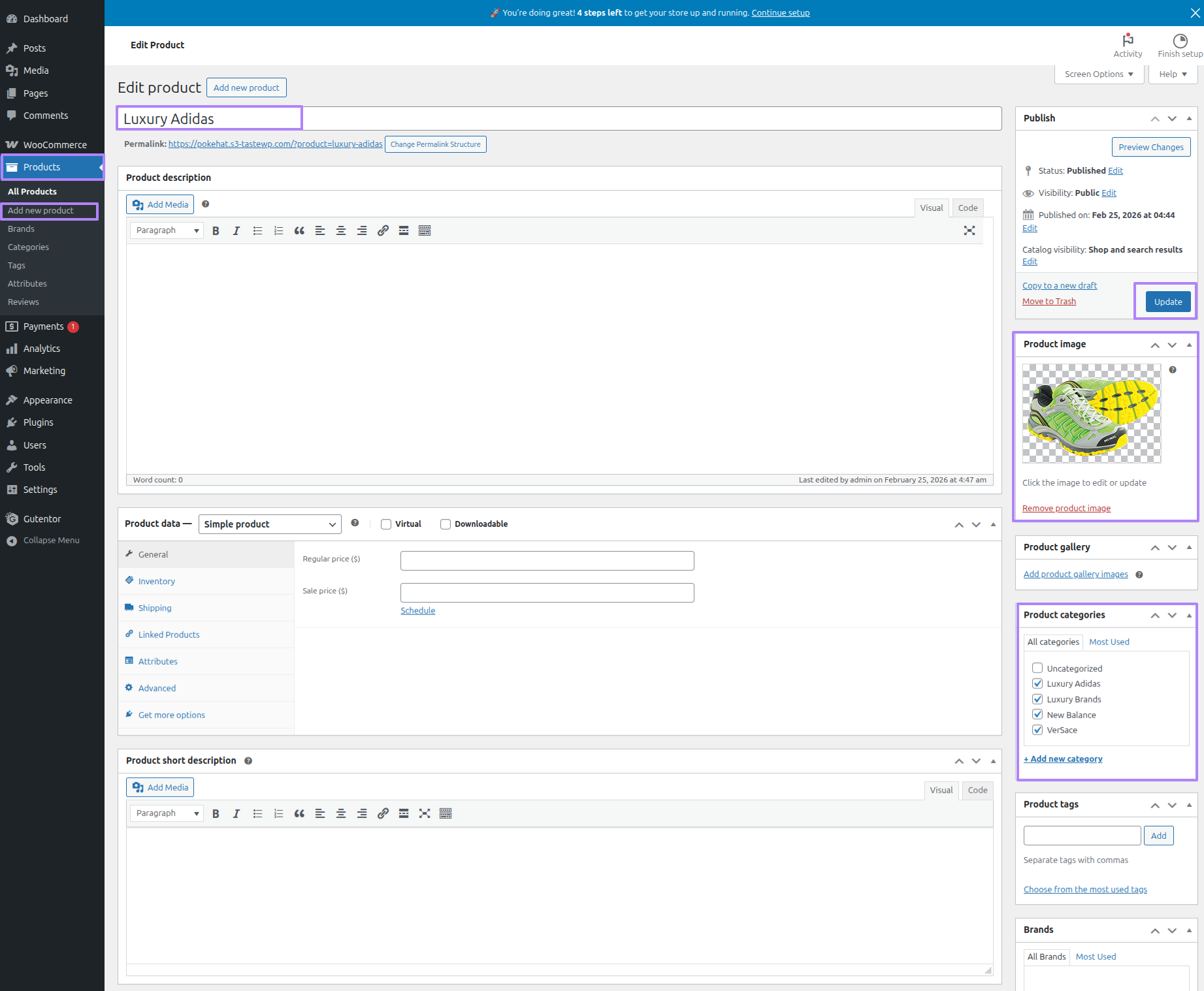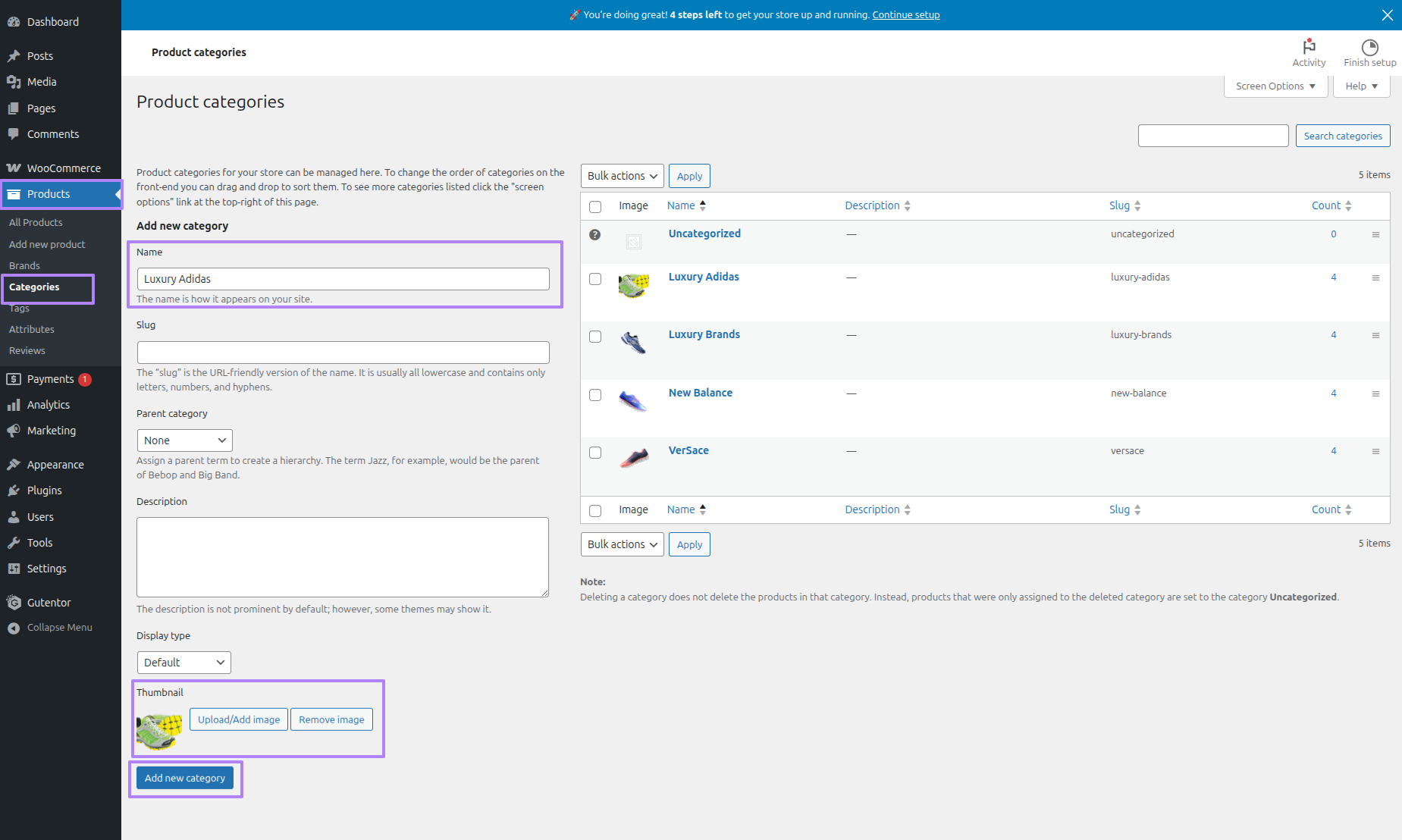 Initial Progress while hitting "Dashboard" Discover "Products" and lastly "Categories" .