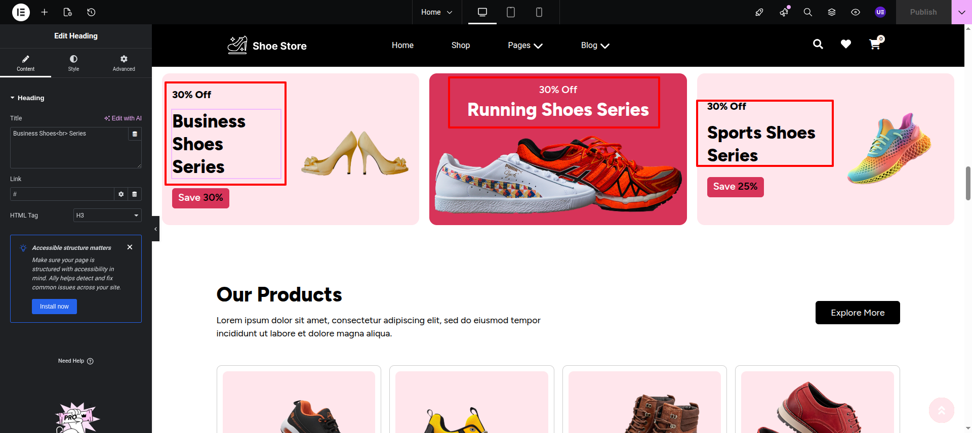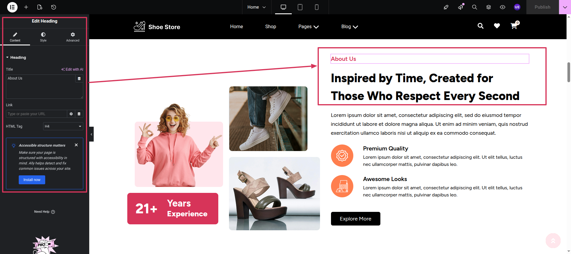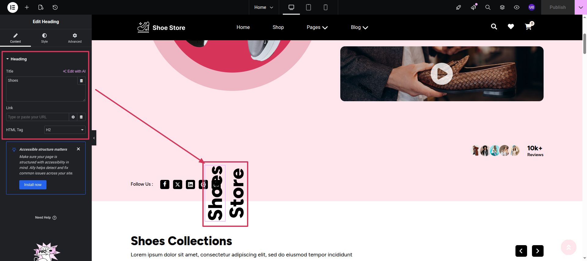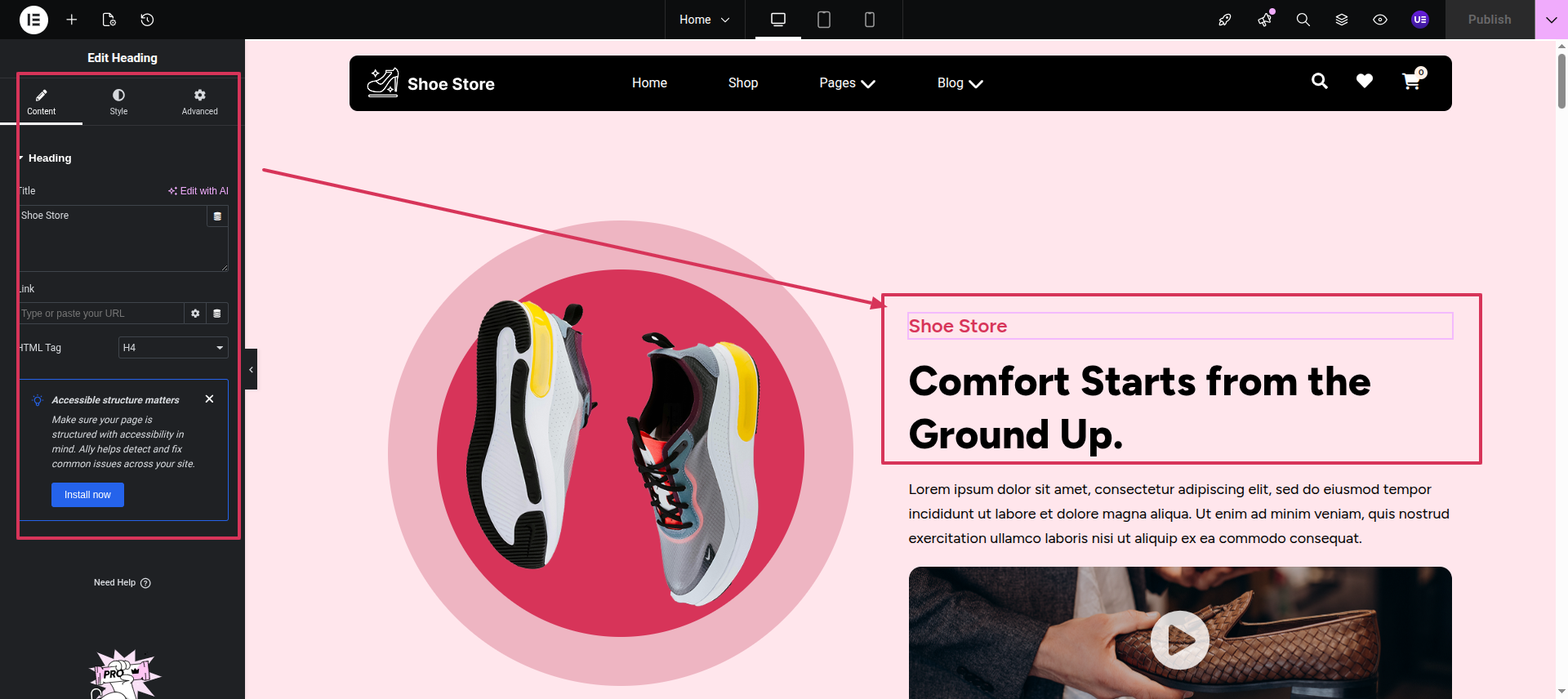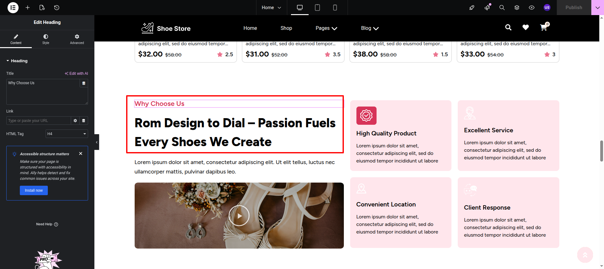 Initial Progress while hitting "Edit with Elementor" Discover "Heading" add desired text in heading widget .