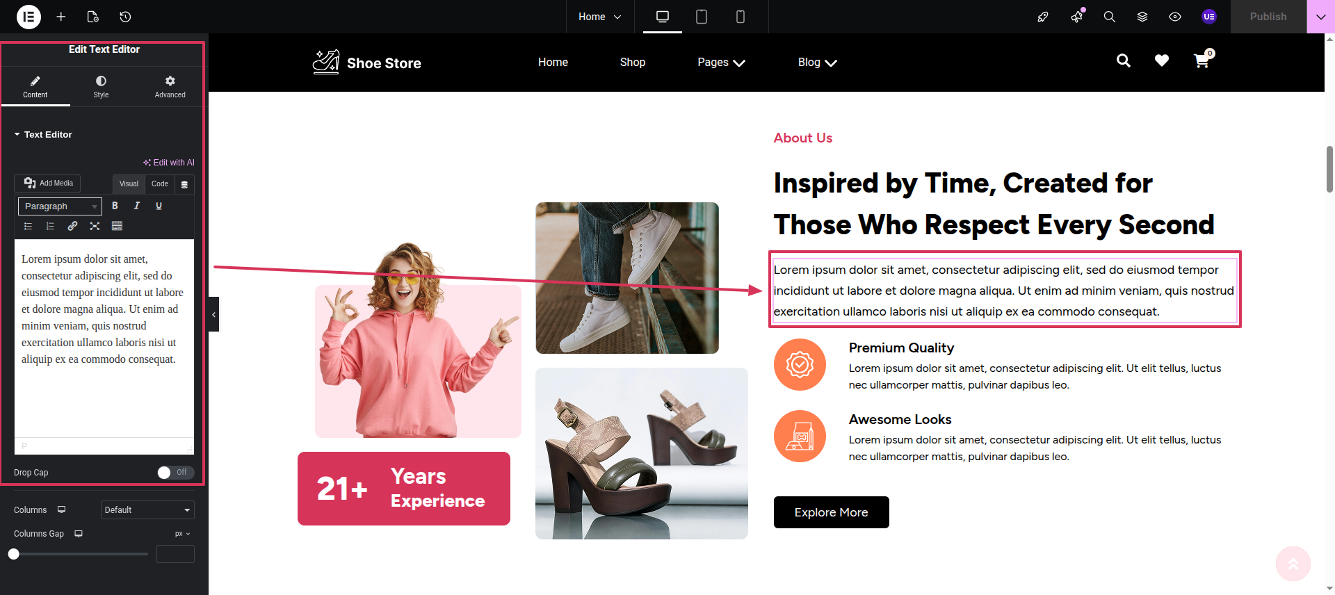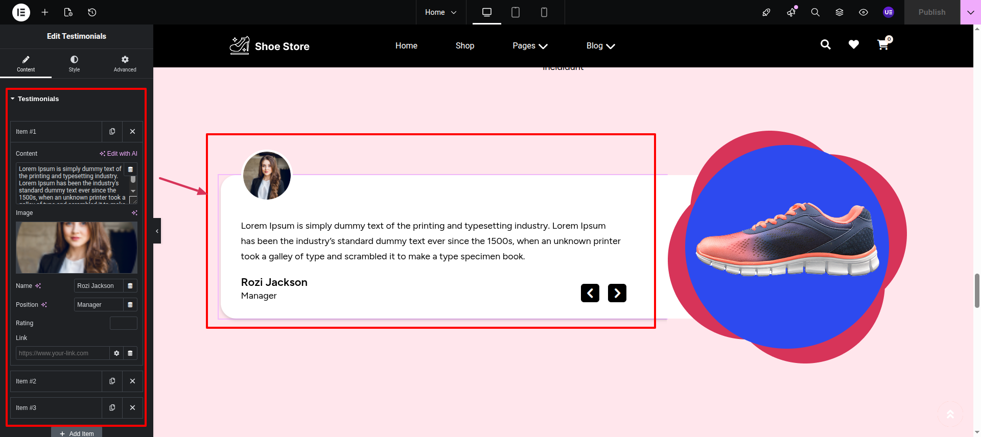 Initial Progress while hitting "edit with elementor" Discover "Testimonials" widget after inserting the widget add testimonial description, then add image and at last Name and designation of the person .