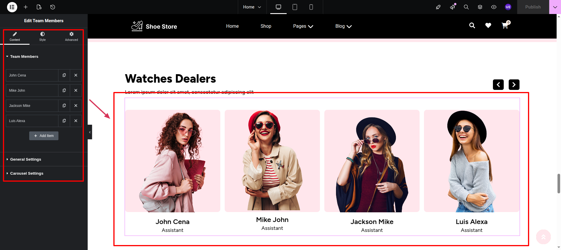 Initial Progress while hitting "edit with elementor" Discover "Team members" widget then add "Name and designation" Move forward "to add member image".
