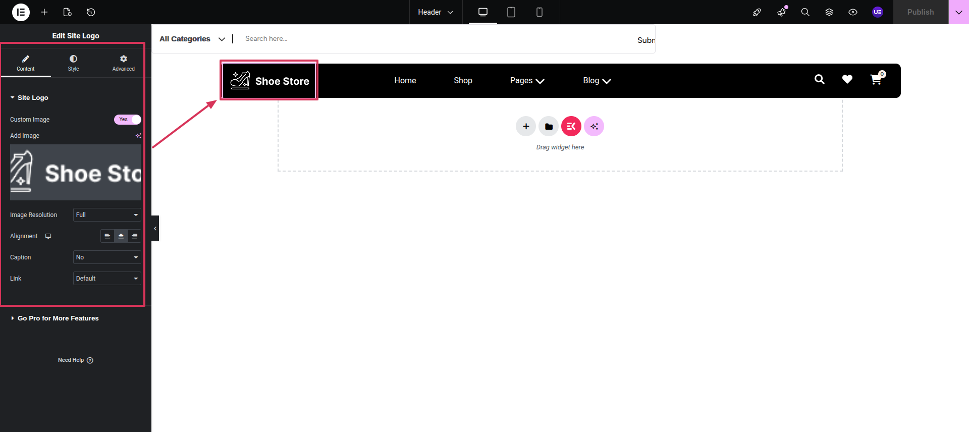 Initial Progress while hitting "Dashboard" Discover "Elements-Kit" Move forward "Edit with elementor" select image/site identity widget" and then "Publish" .