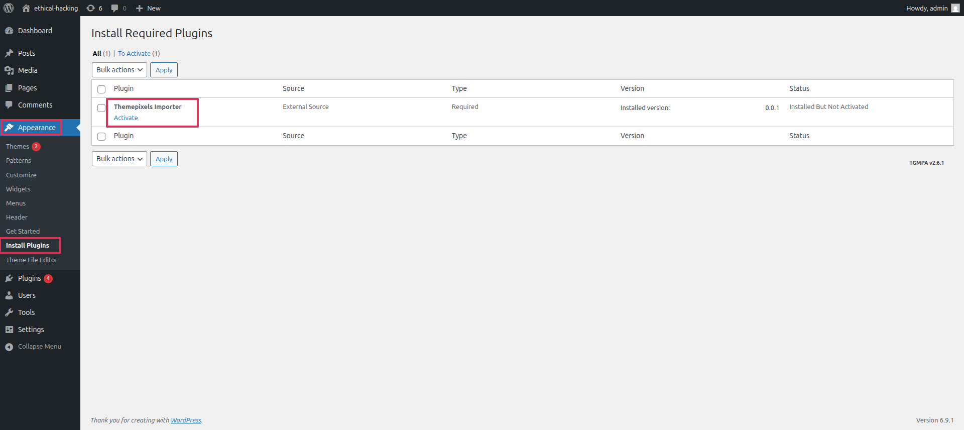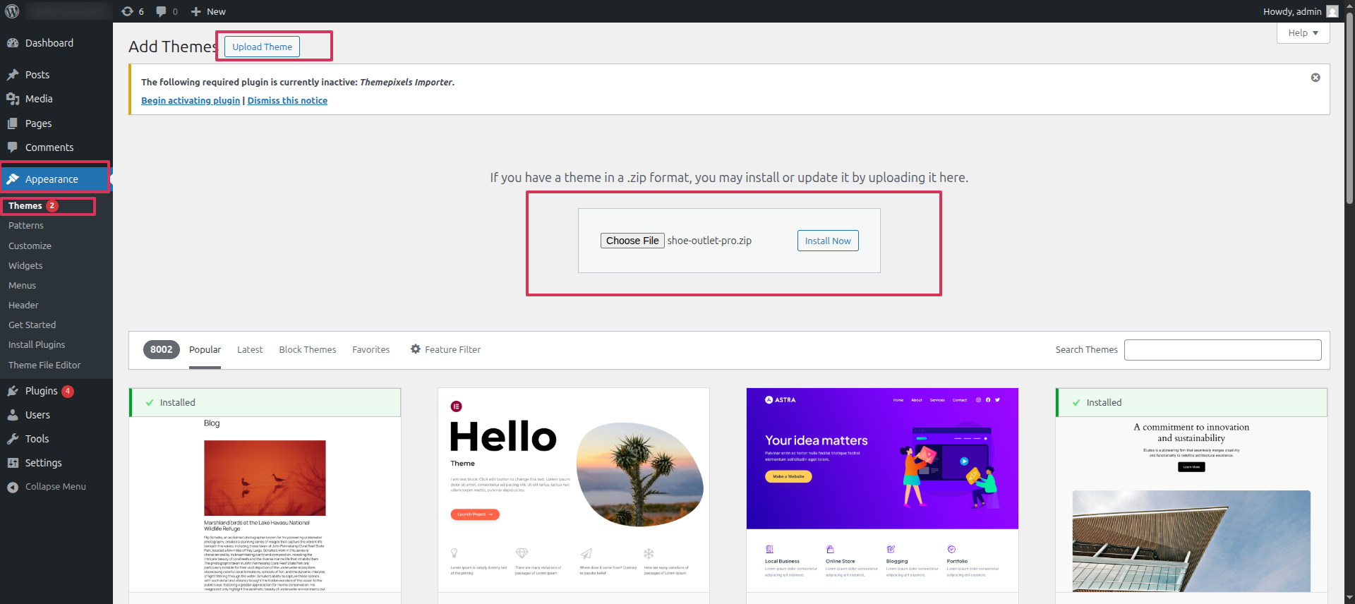 Initial Progress Log into your WordPress Admin as an administrator to activate the selected theme.