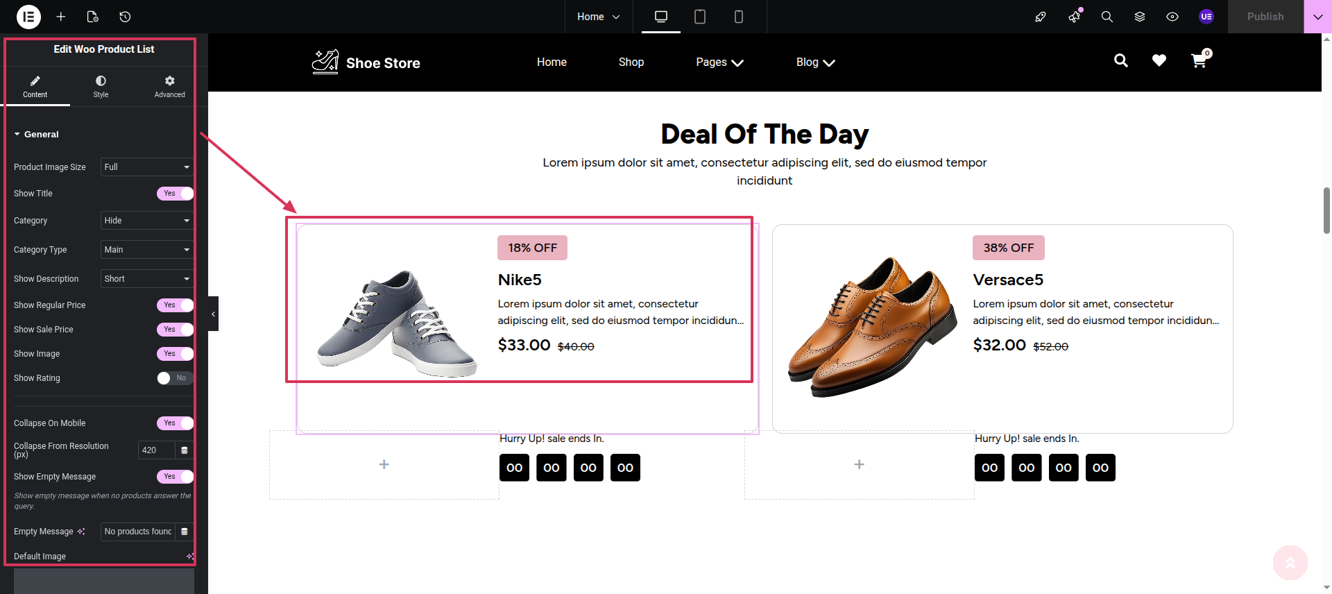 Product List while hitting "Dashboard" Discover "Products List" by Unlimited Elements under elementor widget area and add the widget in your container