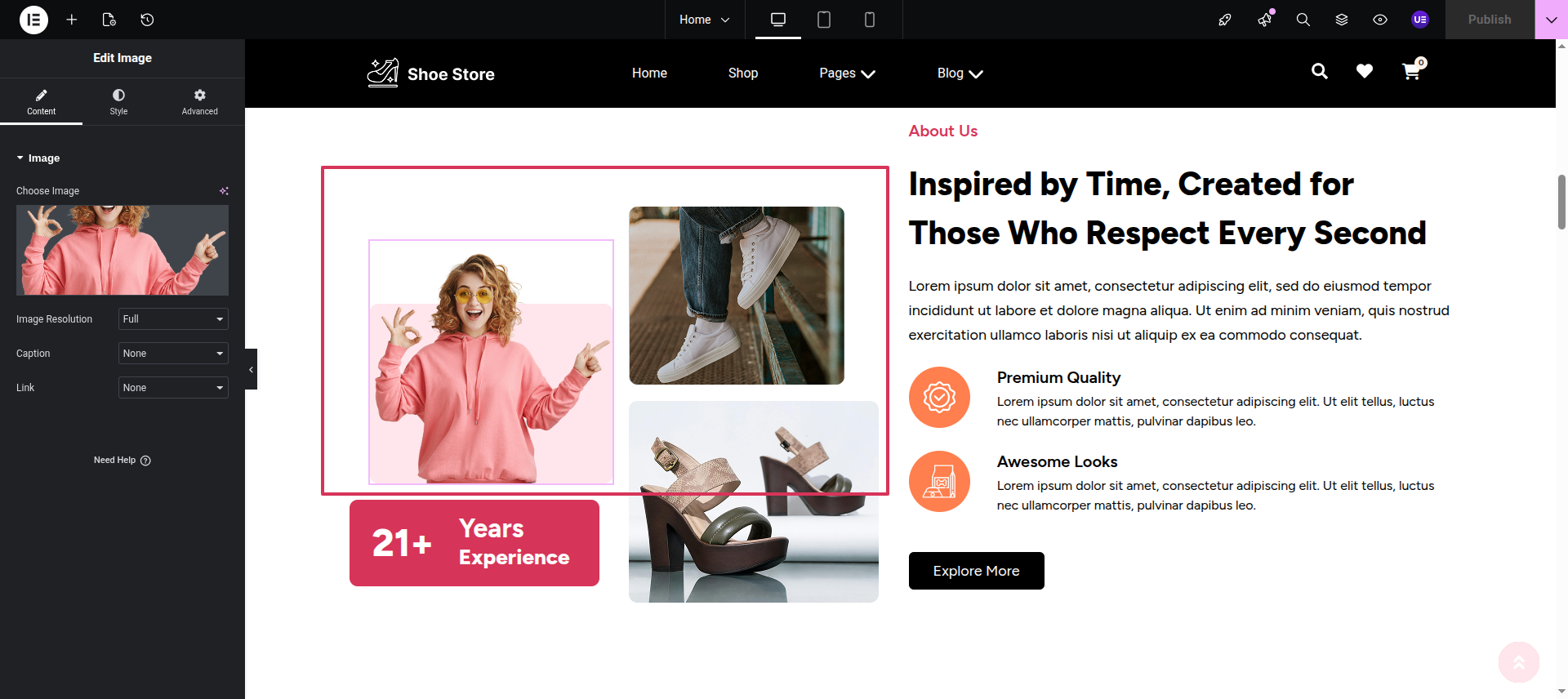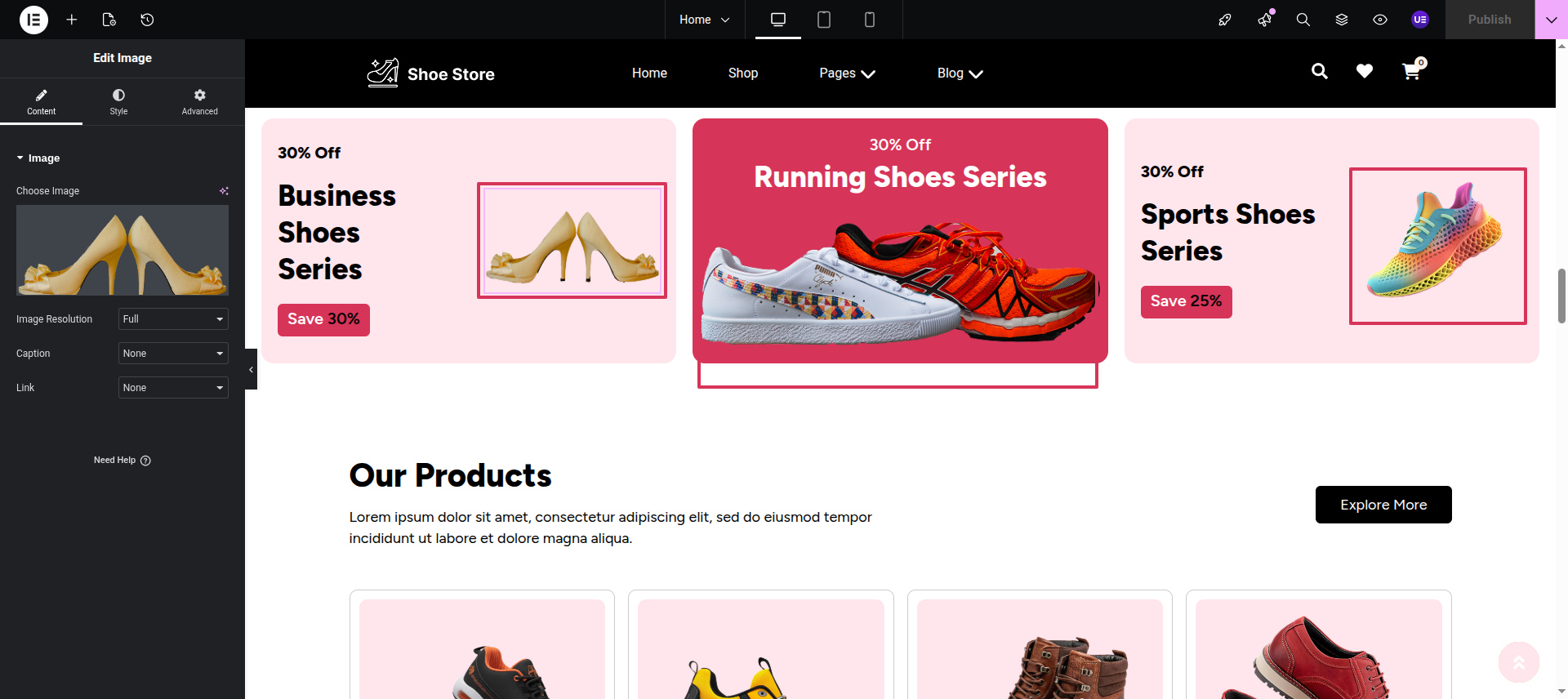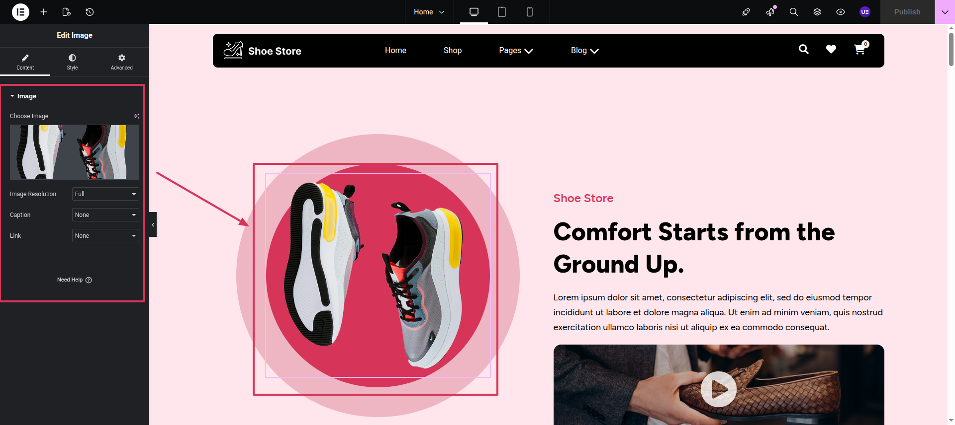 Initial Progress while hitting "edit page with elementor" Discover "Simple Image Widget in widgets" then "add your image in the widget" .
