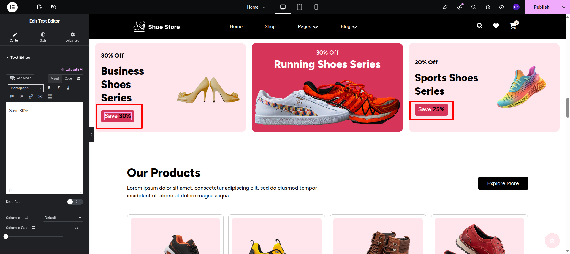 Initial Progress This is the custom created widget. If you want to change any thing in it, you need to access "Templates" -> "Filters" -> "Product Shortcode"