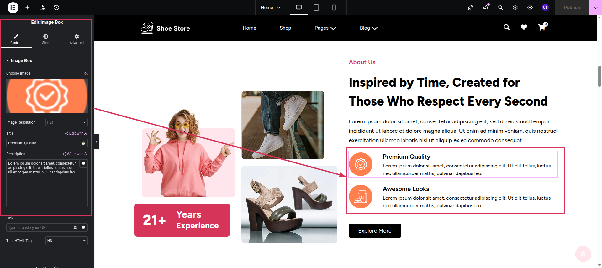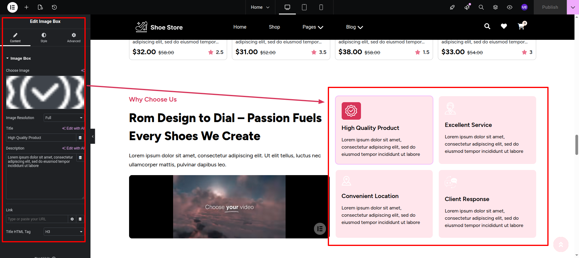 Image Box while hitting "edit with elementor" Discover "Image box" widget then add desired image and text in it. .